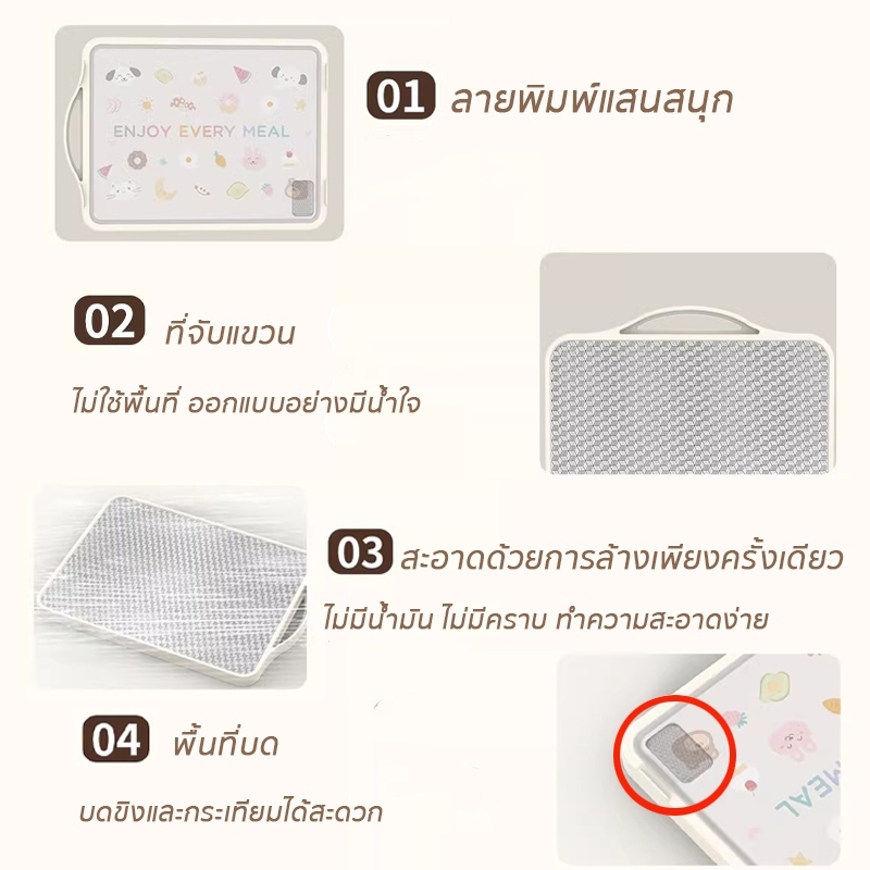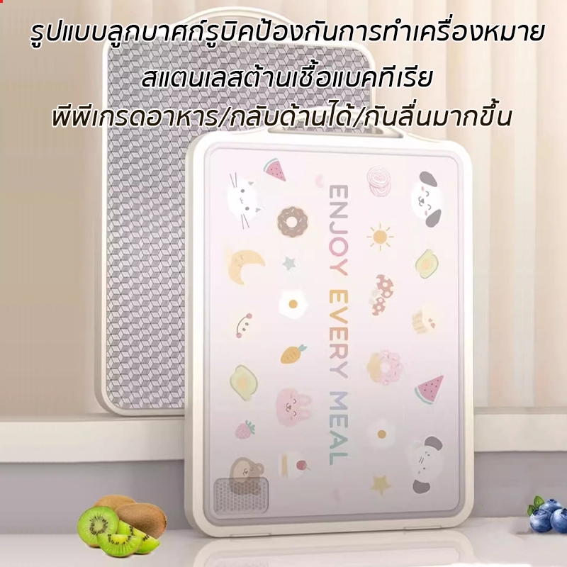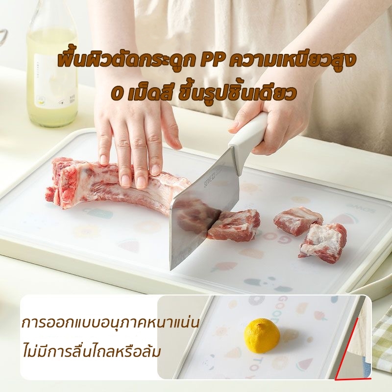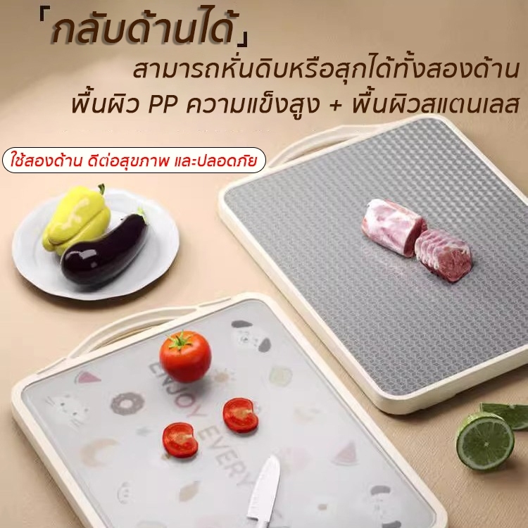 เขียง (pp+ สแตนเลสเกรด) การสัมผัสอาหาร ต้านเชื้อแบคทีเรีย กันเชื้อรา กันลื่น ใช้ได้สองด้าน หนาขึ้น