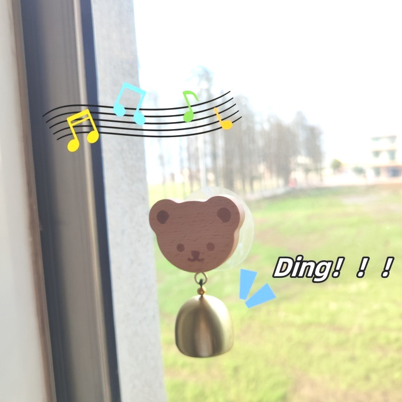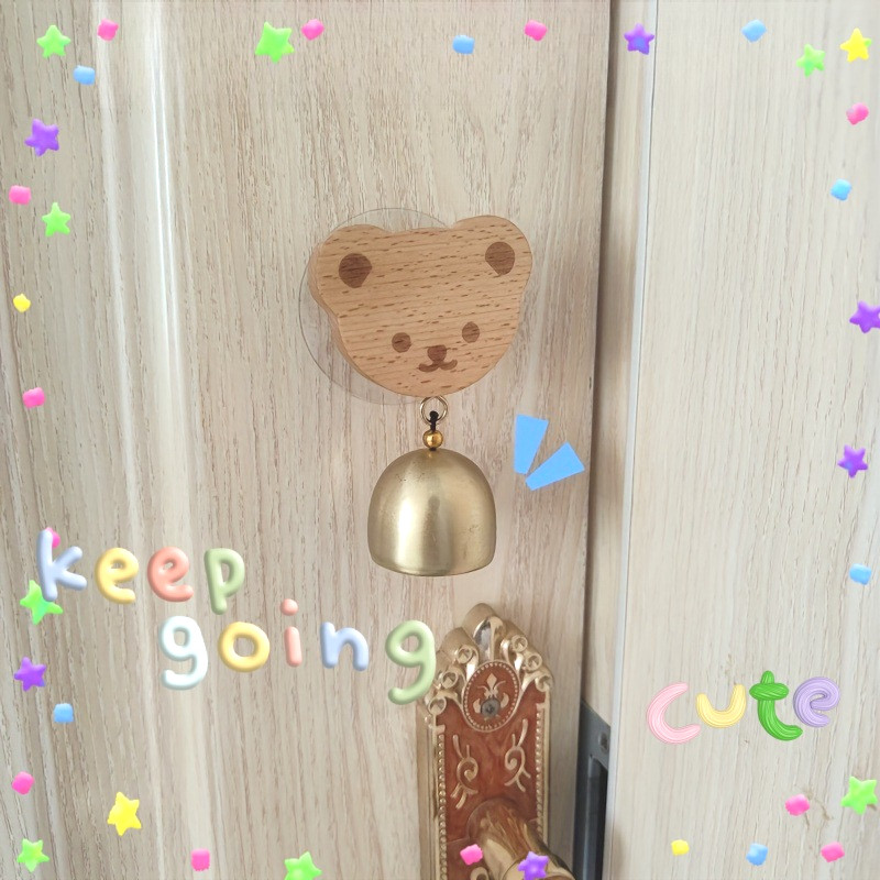 ?COD?กระดิ่งลมประตูไม้เนื้อแข็ง หมีการ์ตูน ป้องกันการโจรกรรม ของตกแต่งประตู