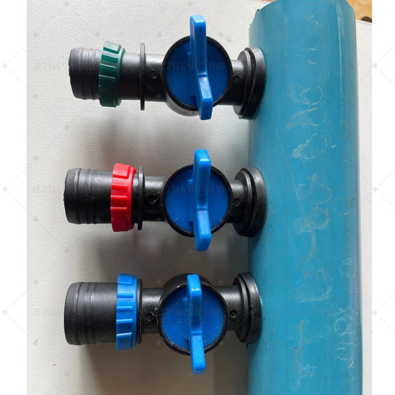 วาล์วเทปน้ำพุ่ง พร้อมตัวล็อคสายยาง ใช้กับท่อเมน ต่อท่อ PVC/PE แบบเจาะรู ขนาด 4หุน 6หุน 1นิ้ว