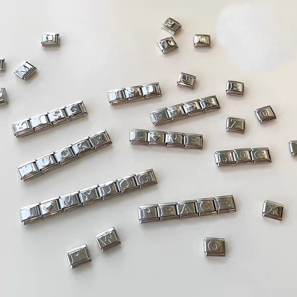 ตัวอักษร A-Z 2025 ใหม่แฟชั่นอิตาเลี่ยน Charm Links สําหรับสร้อยข้อมือ Fit 9 มม.สร้อยข้อมือสแตนเลสเครื่องประดับ DIY ทํา