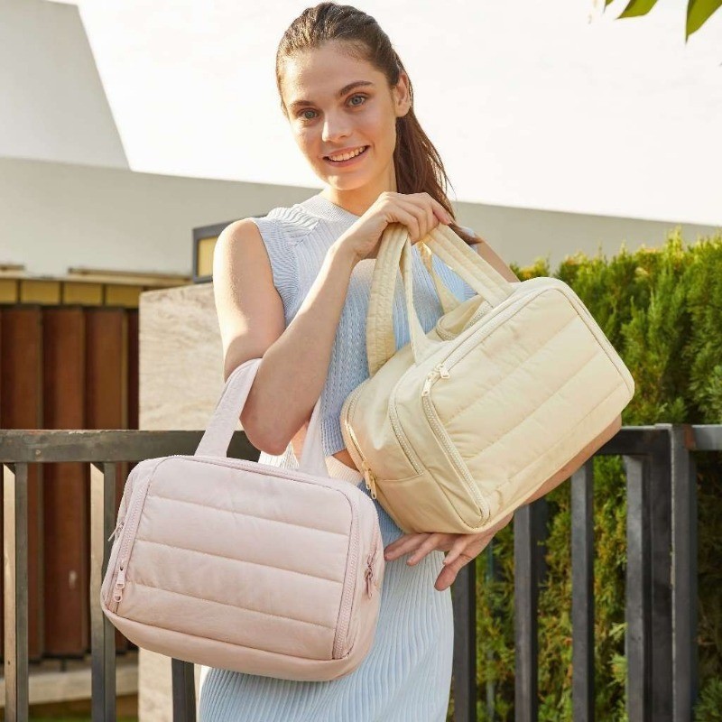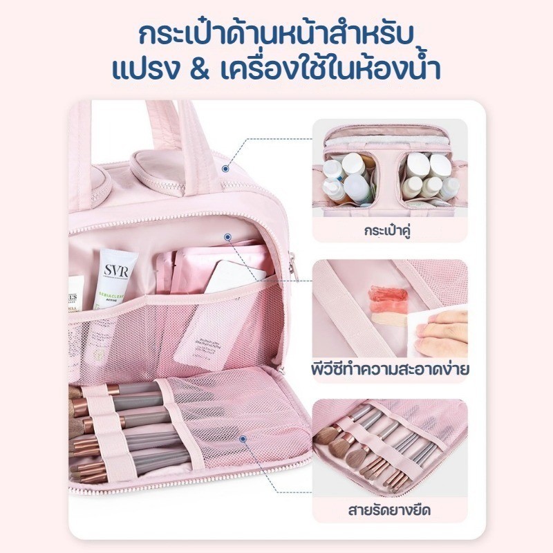 กระเป๋าเครื่องสำอางนี้มีการออกแบบแบบเปิดสองด้าน ที่ช่วยให้คุณเข้าถึงเครื่องสำอางและอุปกรณ์ต่างๆ ได้อย่างสะดวกและรวดเร็ว