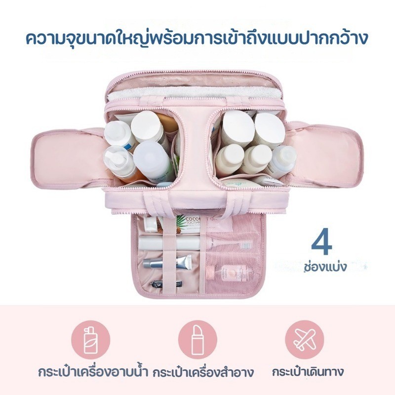 COD กระเป๋าเครื่องสำอาง อเนกประสงค์ ความจุขนาดใหญ่ กระเป๋าจัดระเบียบ ช่องเปิดขนาดใหญ่ 4 ช่อง