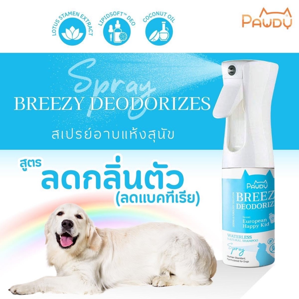 Pawdy Waterless Natural Shampoo Spray – Breezy Deodorized มี 2 ขนาด