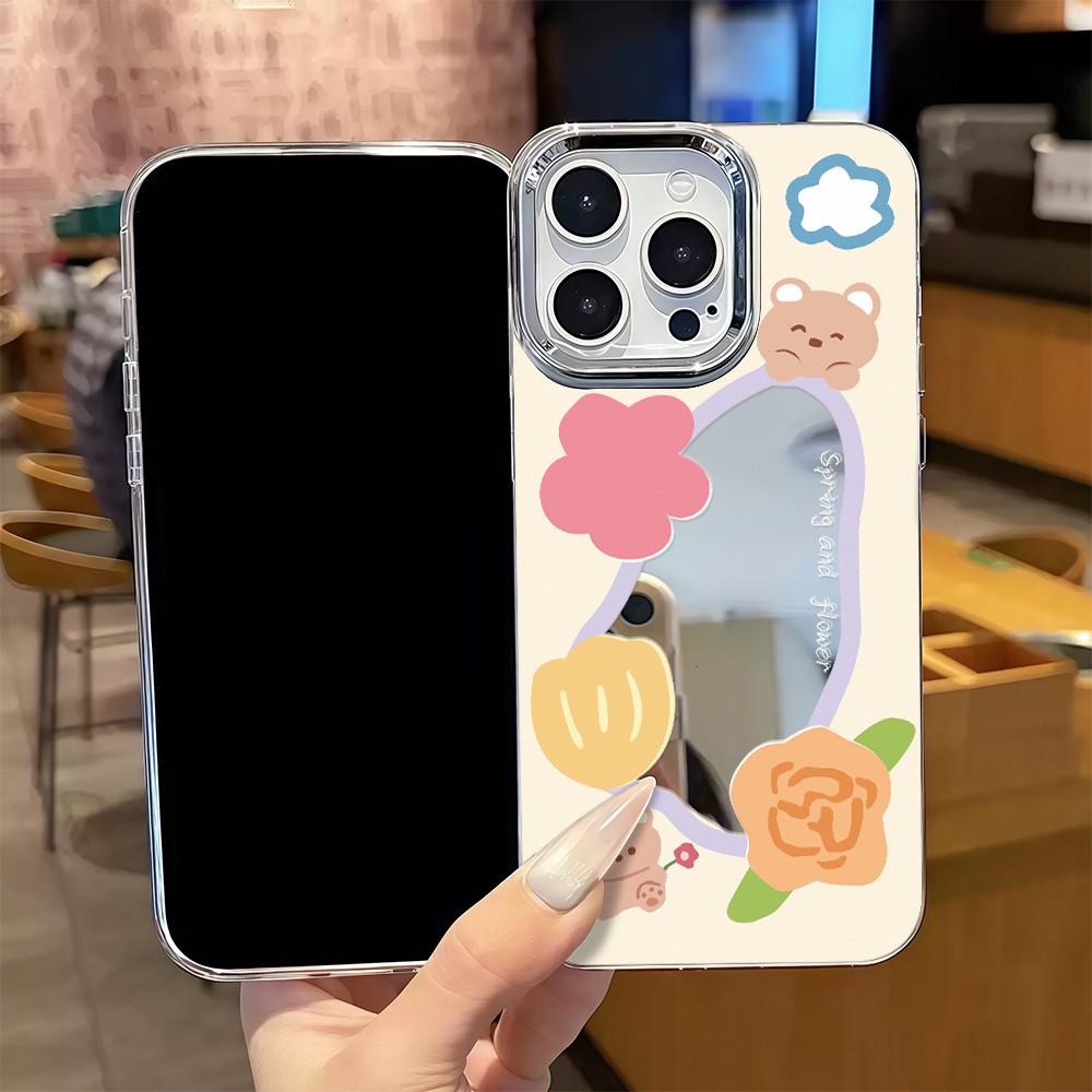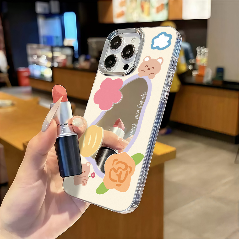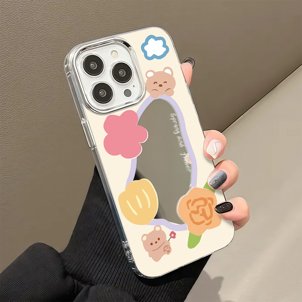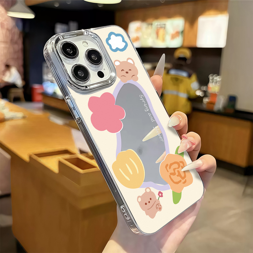 ?จัดส่งในพื้นที่? เคสแบบกระจกมิเรอร์ หมีน้อยน่ารัก สําหรับ IPhone16 15 14 13 12 7 8Plus 11 Pro 16 Promax XR XS Max Case