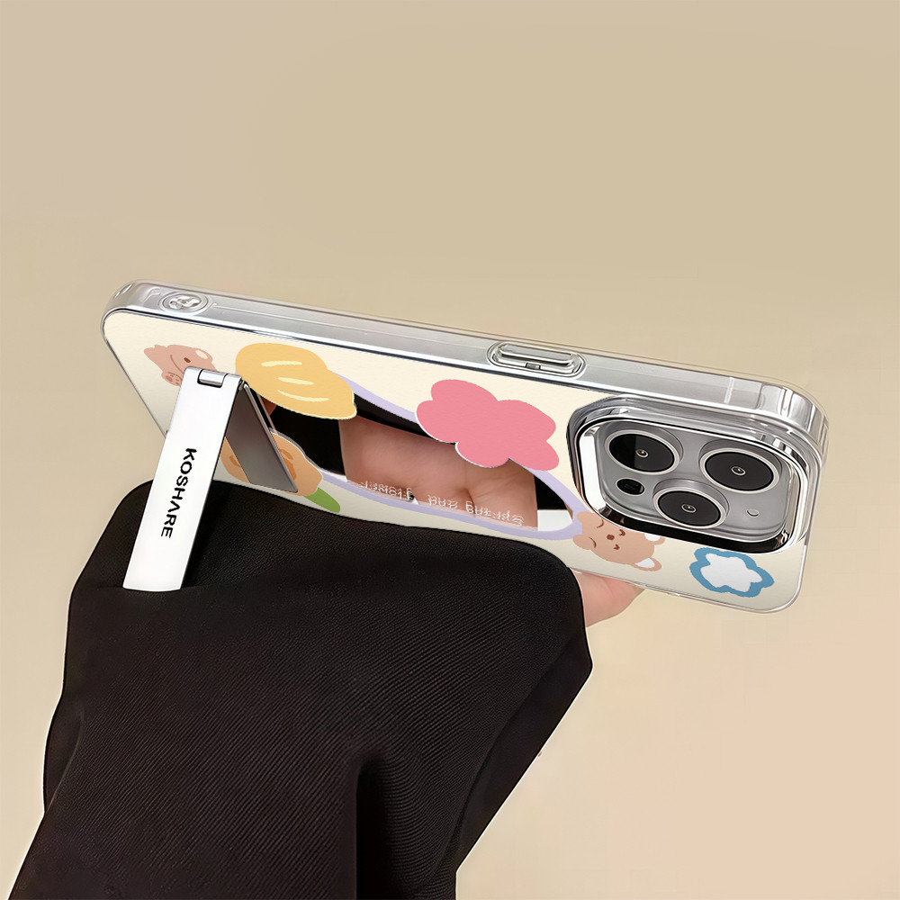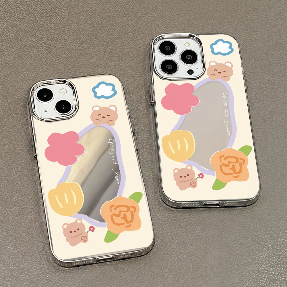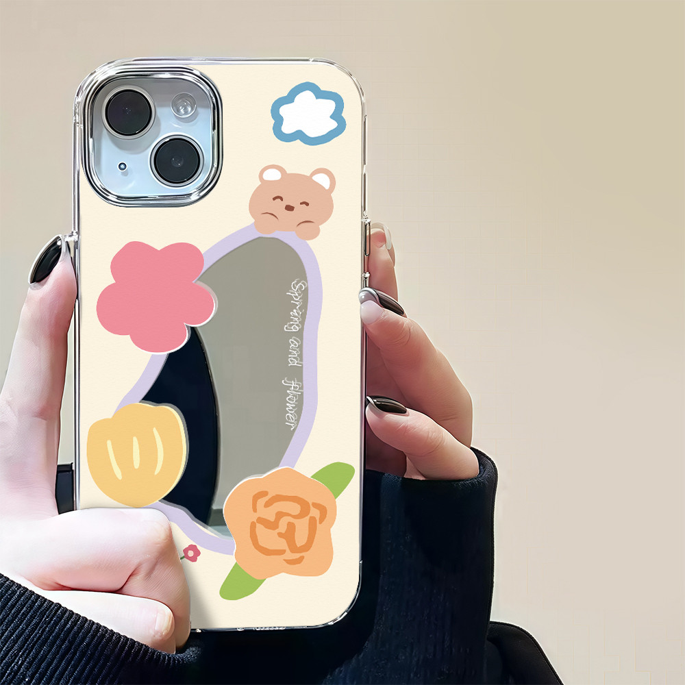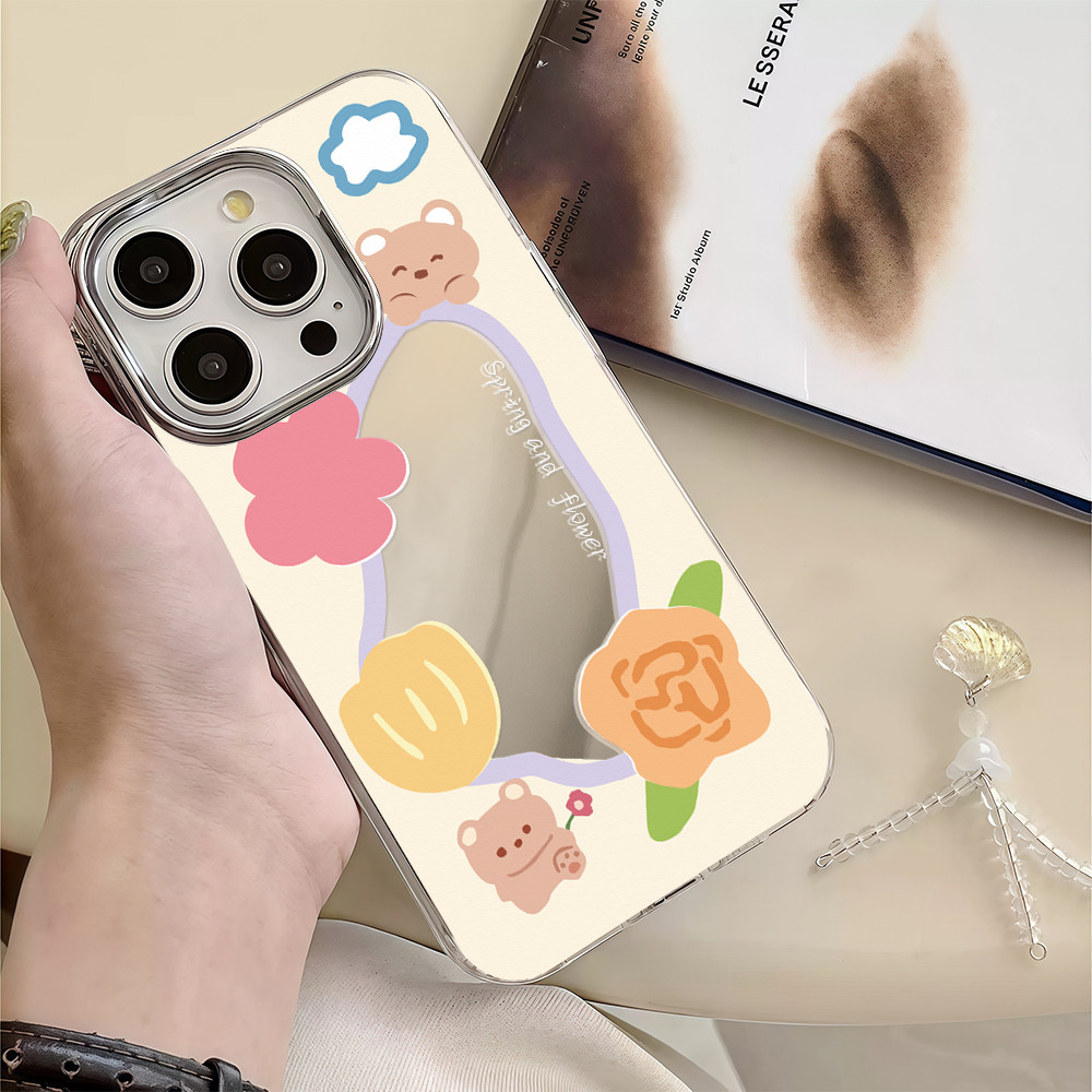 ?จัดส่งในพื้นที่? เคสแบบกระจกมิเรอร์ หมีน้อยน่ารัก สําหรับ IPhone16 15 14 13 12 7 8Plus 11 Pro 16 Promax XR XS Max Case