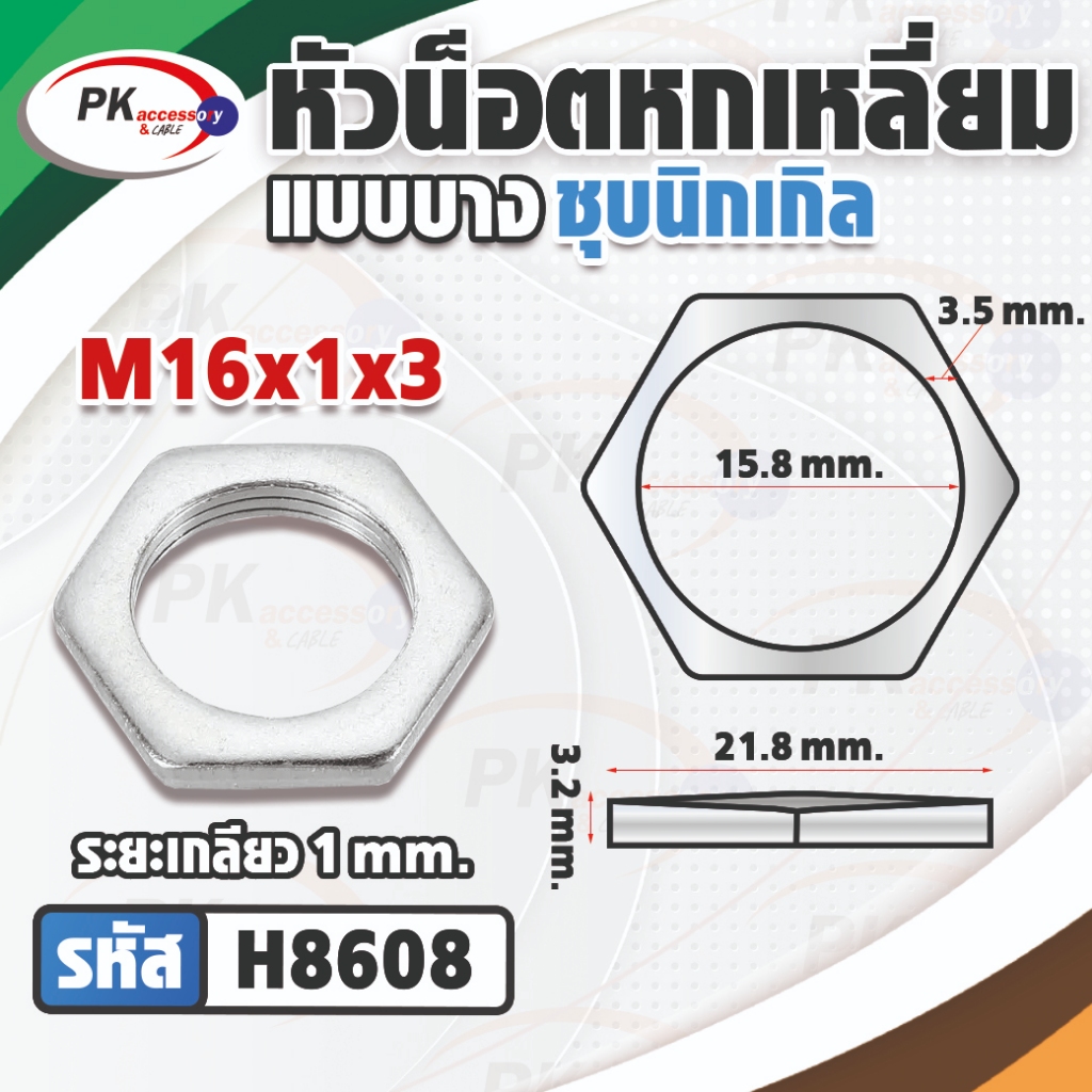 หัวน็อตหกเหลี่ยมแบบบางเหล็กชุบนิเกิลM16 มีหลายขนาด (ราคาต่4ตัว)