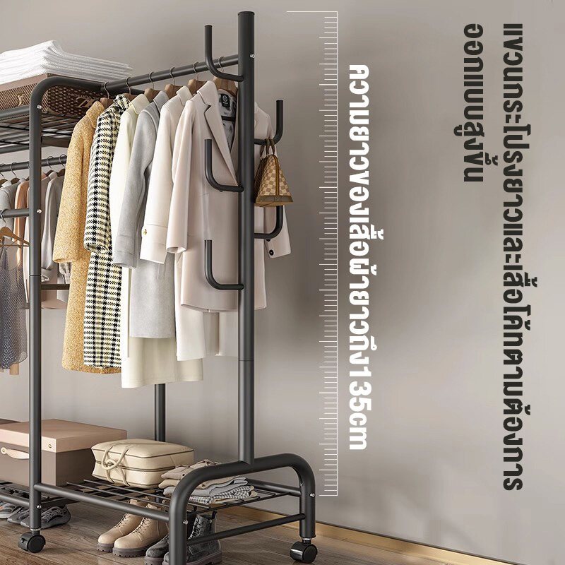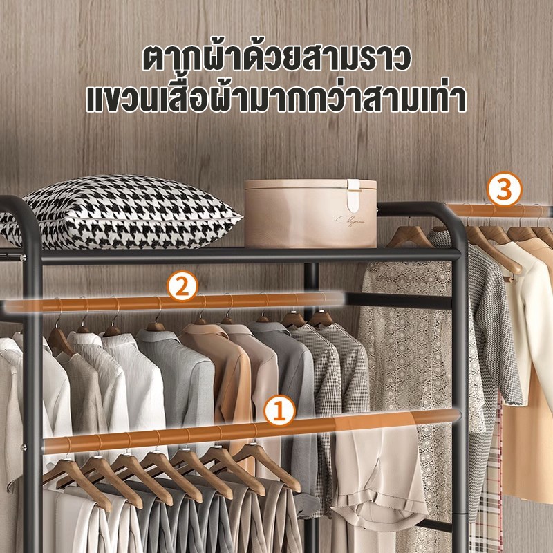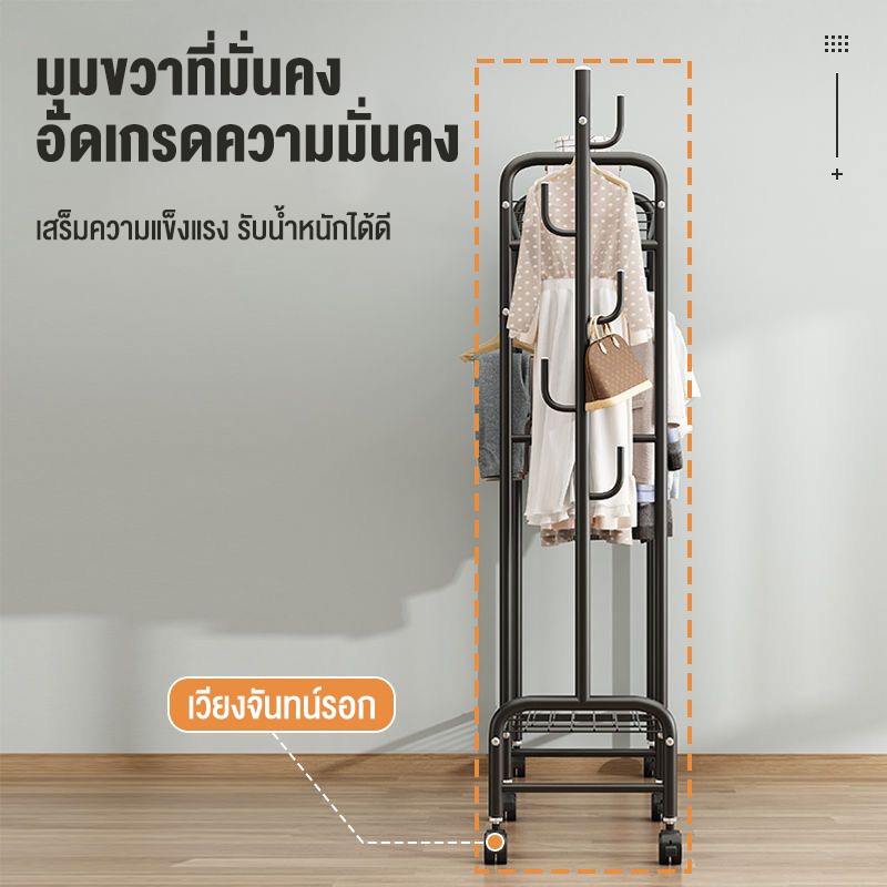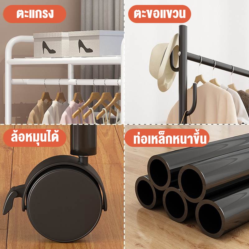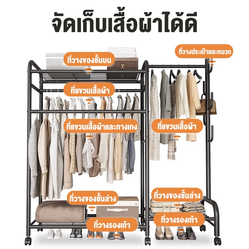 ราวตากผ้า ราวแขวนเสื้อผ้า หลายช่อง/ความจุมาก ประหยัดพื้นที่ ราวเหล็กมีล้อ ราวแขวนเสื้ออเนกประสงค์ รับน้ำหนักได้150+kg