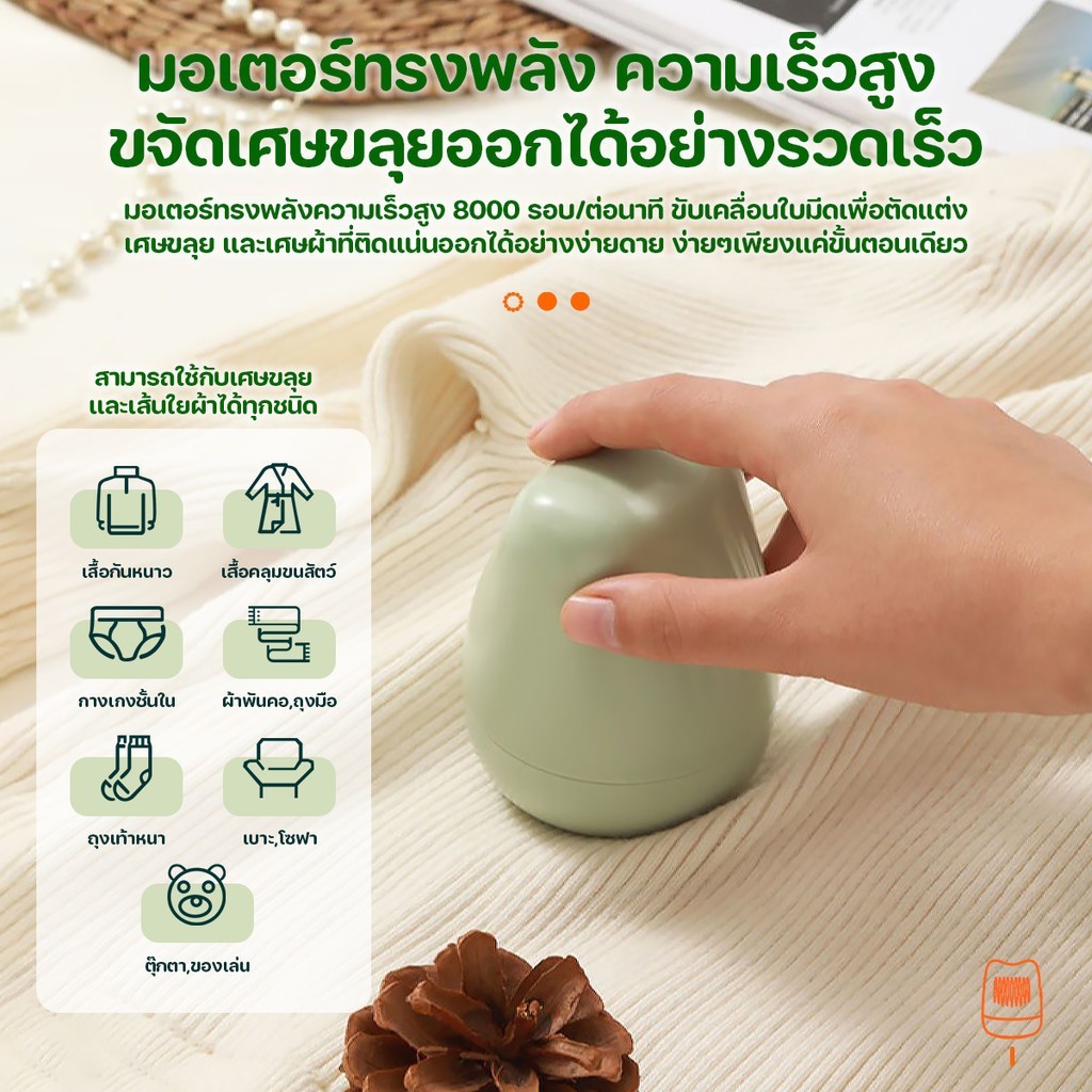 เครื่องตัดขุยผ้า เครื่องกำจัดขุยผ้า ขนาดเล็ก กะทัดรัด พกพาง่าย ทำงานได้ดีในการกำจัดขนปุกปุยPortable Electric ชาร์จ USB