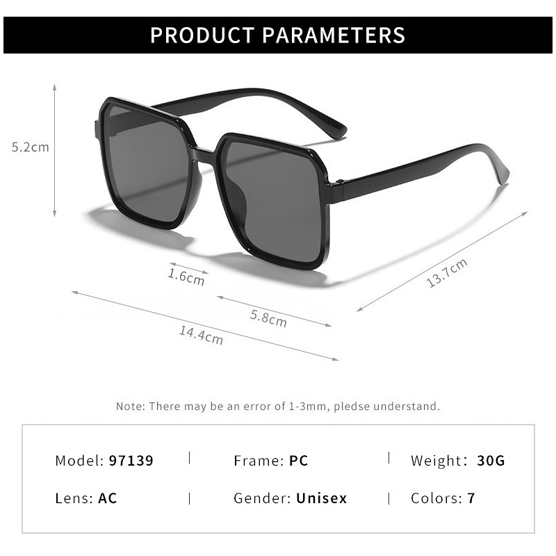ส่งเร็ว?แว่นตากันแดดกรอบสี่เหลี่ยมใหญ่แฟชั่นสไตล์เกาหลีป้องกันรังสียูวีแว่นตาผู้ชายและผู้หญิง-Ranliy