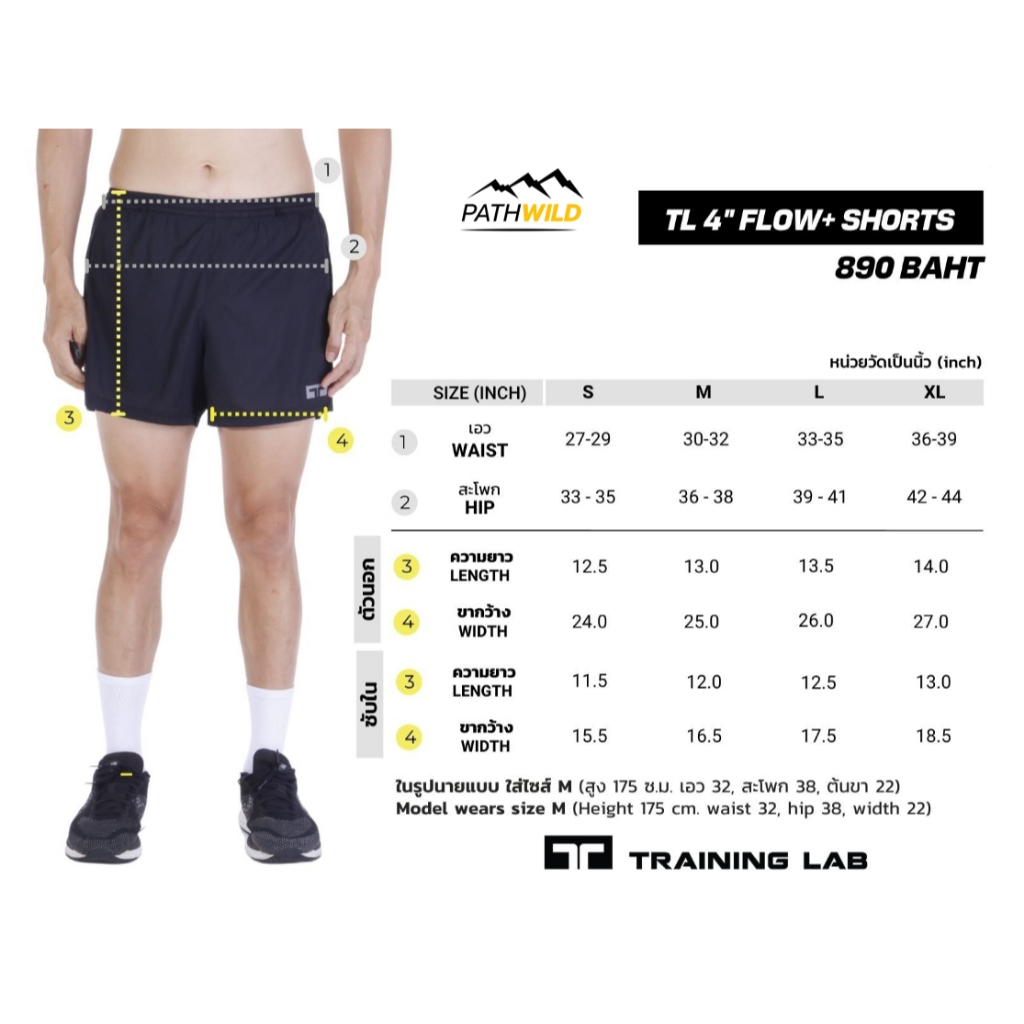 กางเกงวิ่งรุ่น 4 นิ้ว Training LAB TL 4” Flow+ Shorts โฟล พลัส ทรงคลาสสิค ผ้าแห้งเร็ว น้ำหนักเบา ระบายอากาศดี