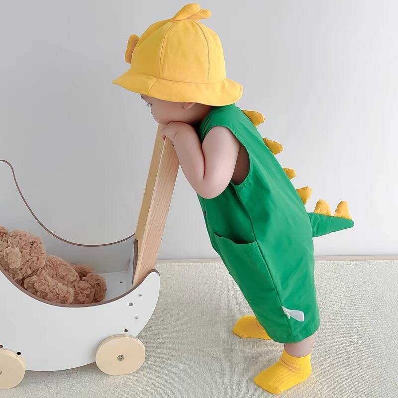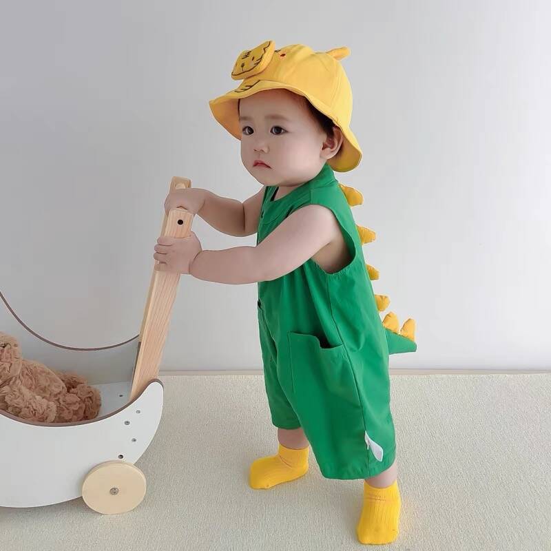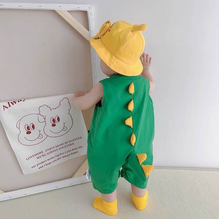 3 ชิ้น-ทารกแรกเกิดเด็กทารกเสื้อผ้าเด็กทารกแฟชั่นน่ารักไดโนเสาร์สไตล์ ชุดจั๊มสูท ฤดูร้อนแขนสั้นผ้าฝ้ายเสื้อผ้า