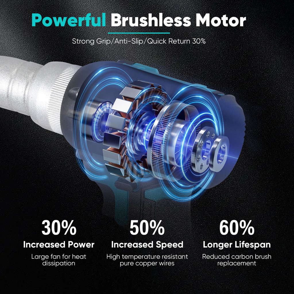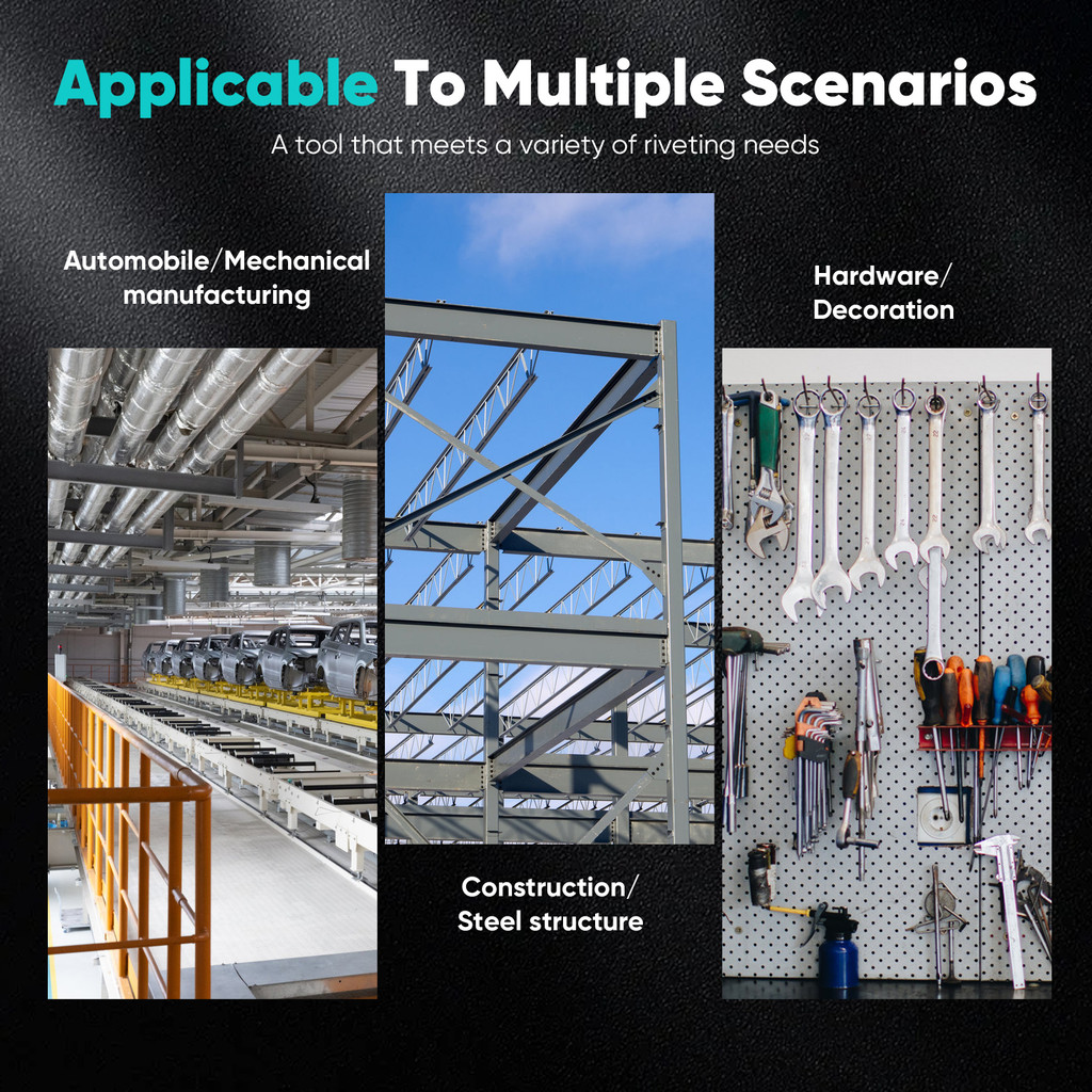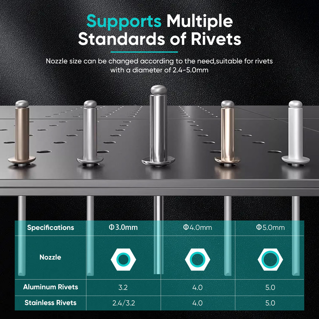 มอเตอร์ไร้แปรงถ่านเสียงรบกวนต่ำ: น็อต Rivet มีมอเตอร์ไร้แปรงถ่านเสียงรบกวนต่ำเพื่อลดเสียงรบกวนและการกระจายความร้อนที่ดีขึ้นช่วยยืดอายุการใช้งาน ไม่ต้องใช้สายเคเบิลและเชื่อมต่อแบตเตอรี่เพื่อความสะดวกในการใช้งานทุกที่