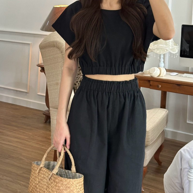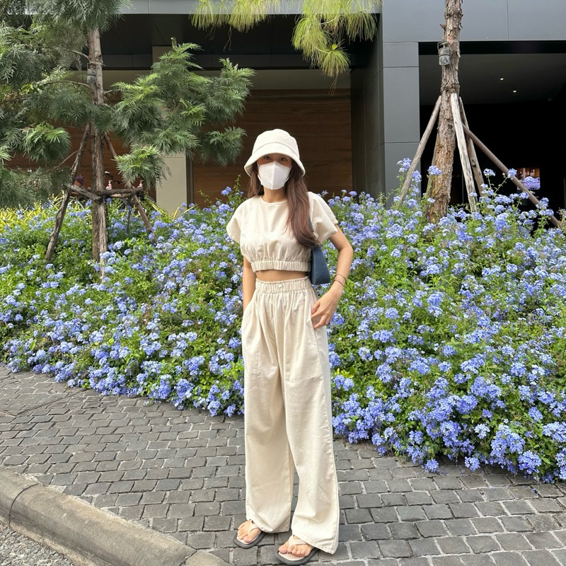 (ส่งฟรี) JUNI SET สีเบจ 1 เซต ชุดผ้าฝ้าย ลินิน เสื้อครอป กางเกงขายาว ชุดเซ็ท ผู้หญิง – Prosperous.th