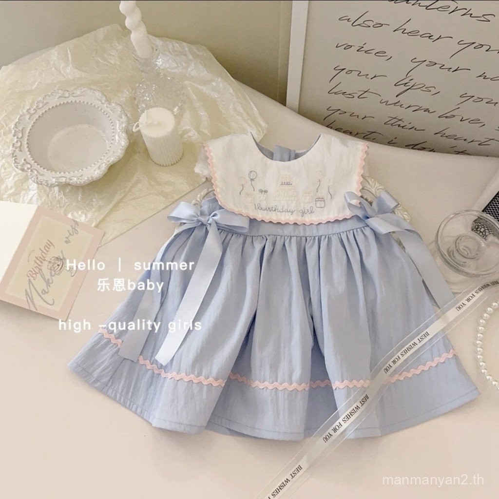 ชุดเดรสเด็กผู้หญิง2024ชุดเดรสแขนกุดหวานน่ารักสำหรับเด็กกลางฤดูร้อนชุดเจ้าหญิงสำหรับเด็ก