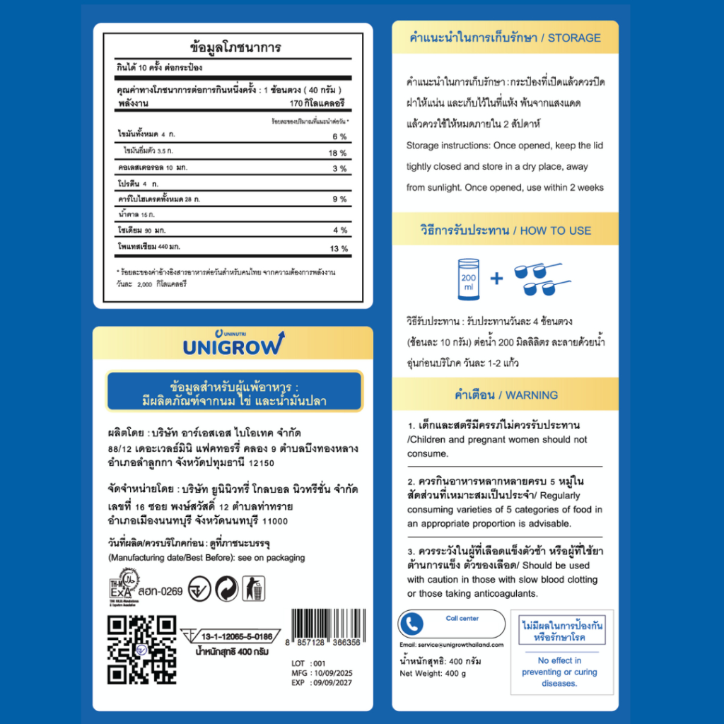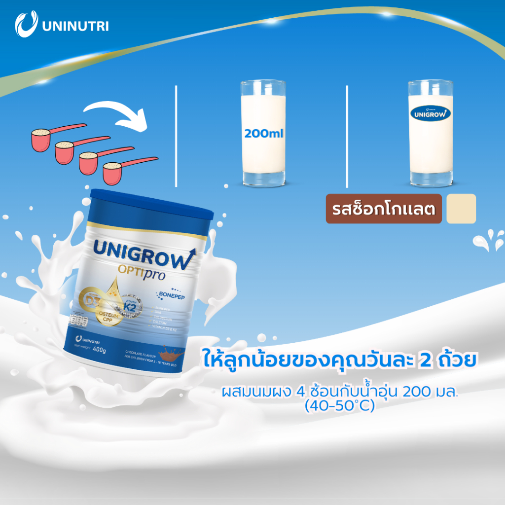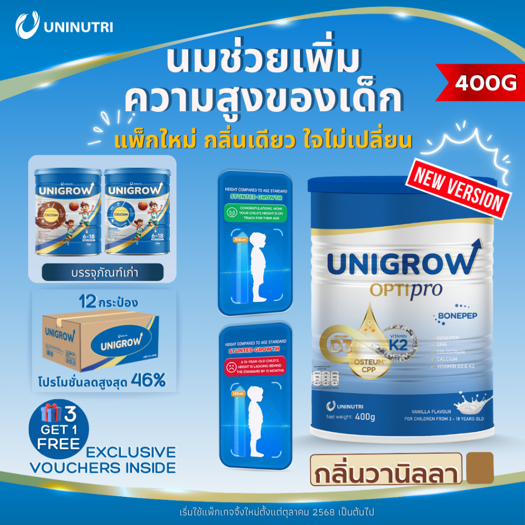 ??UniGrow Vanilla 400g | นมเพิ่มความสูง เด็กโต 3–18 ปี เสริมแคลเซียม D3K2