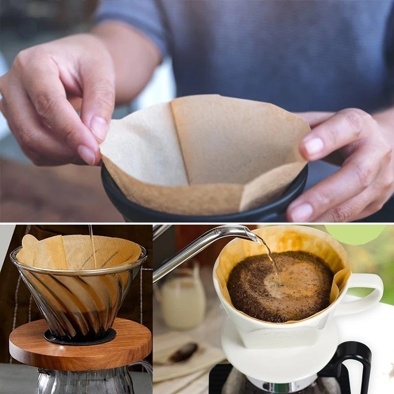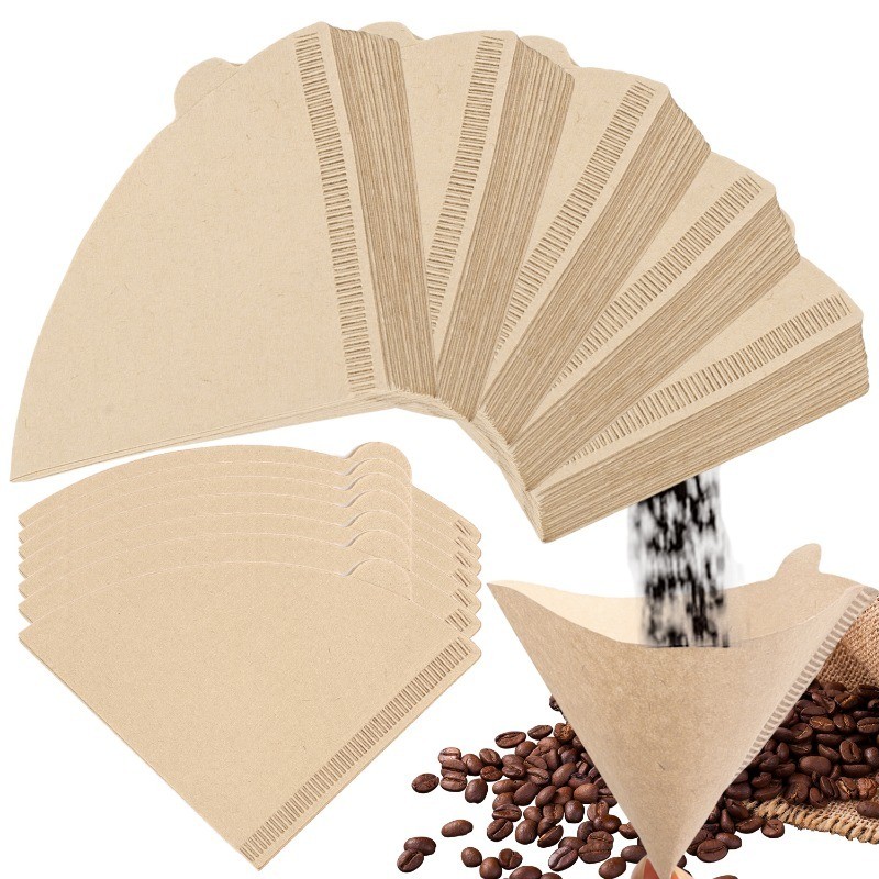 กระดาษกรองกาแฟแบบใช้แล้วทิ้ง 50/100 ชิ้น – กระดาษหยดเยื่อไม้รูปตัววี – ที่กรองกาแฟกรวยในครัวเรือน