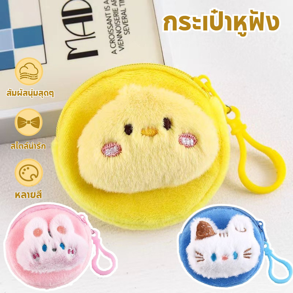 น่ารัก กระเป๋าตุ๊กตาการ์ตูน กระเป๋าใส่หูฟัง สายชาร์จ กระเป๋าเก็บของ แบบซิลิโคนนิ่ม ทรงวงรี แบบพกพาสะดวก Storage bag