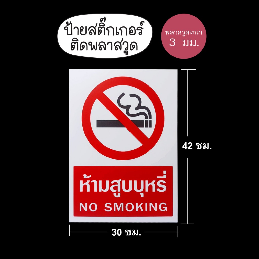 ป้ายห้ามสูบบุหรี่ สติกเกอร์ PVC ติดบน พลาสวูด