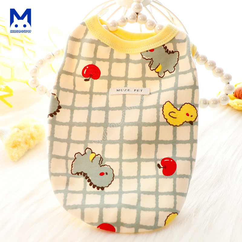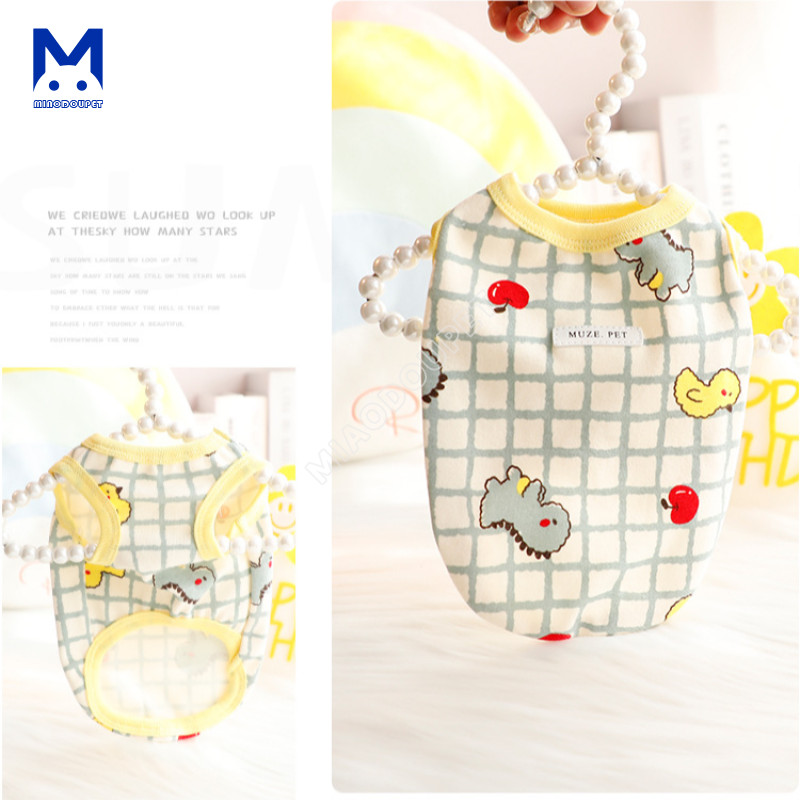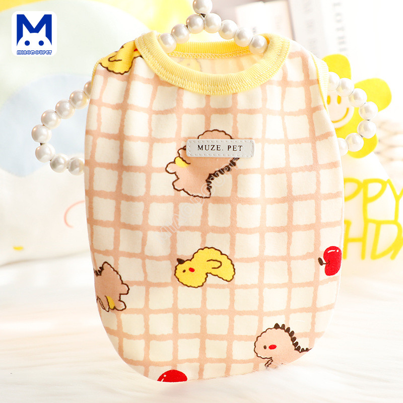 ฤดูใบไม้ผลิฤดูร้อนบางสุนัขขนาดเล็กเท็ดดี้สัตว์เลี้ยงสุนัขแมวผ้าฝ้ายนุ่มน่ารักไดโนเสาร์เจ้าหญิงเสื้อกั๊ก