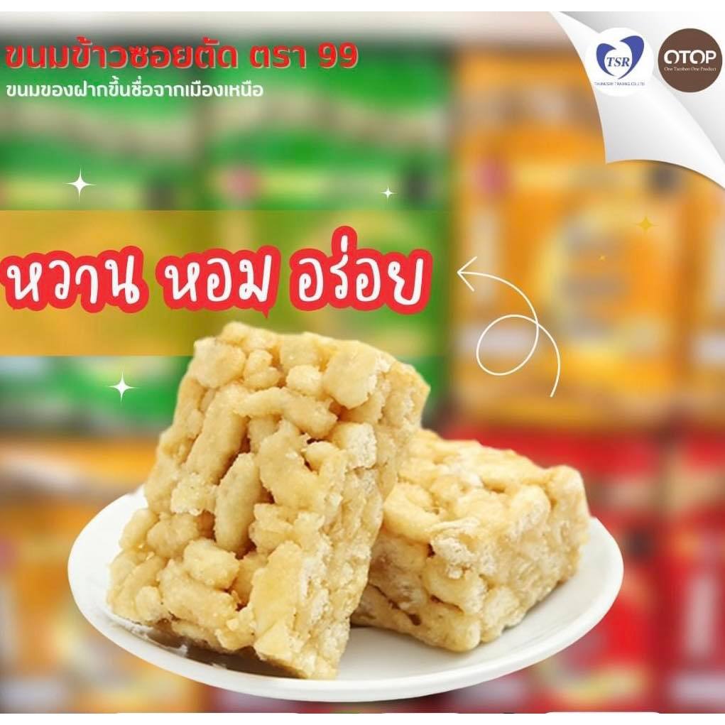 ข้าวซอยตัดตรา 99 ผลิตจากข้าวซอยแท้ๆ นำไปอบจนพองกรอบ คลุกเคล้าส่วนผสมอย่างลงตัว