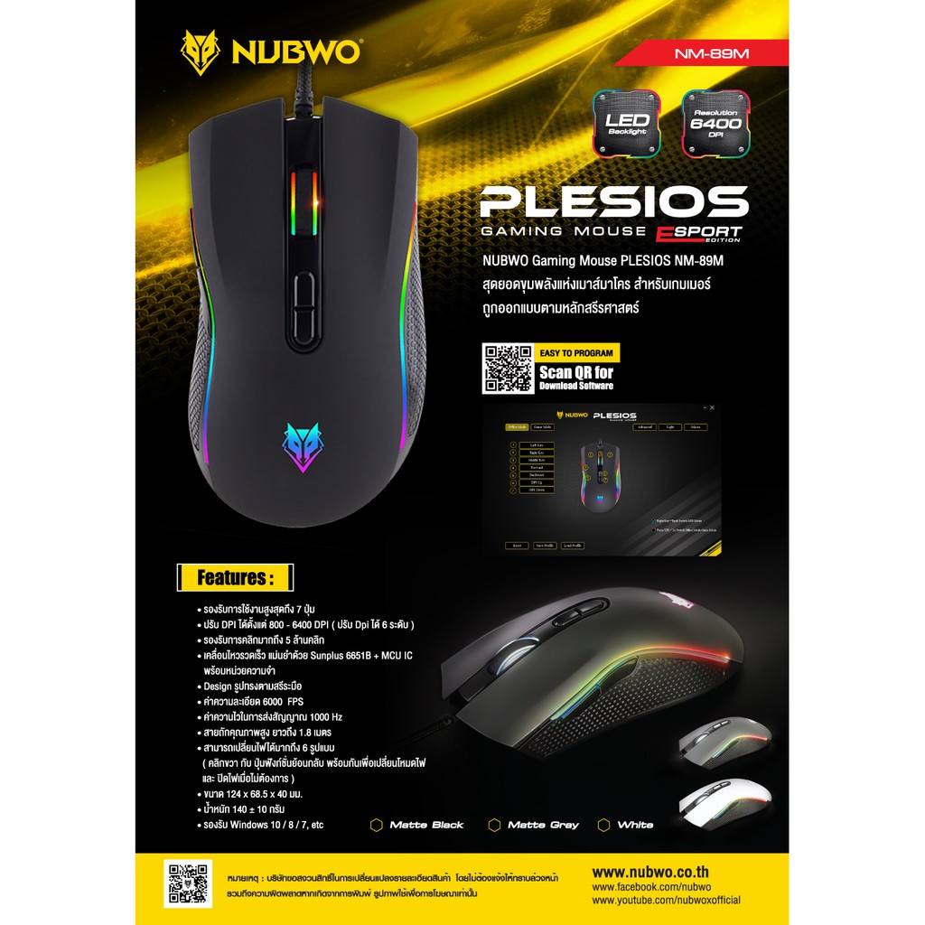 เมาส์เกมมิ่ง Nubwo Gaming Macro Mouse NM-89M เมาส์มาโคร เมาส์เกมมิ่ง ประกัน 1ปี เม้าส์ Plesiois