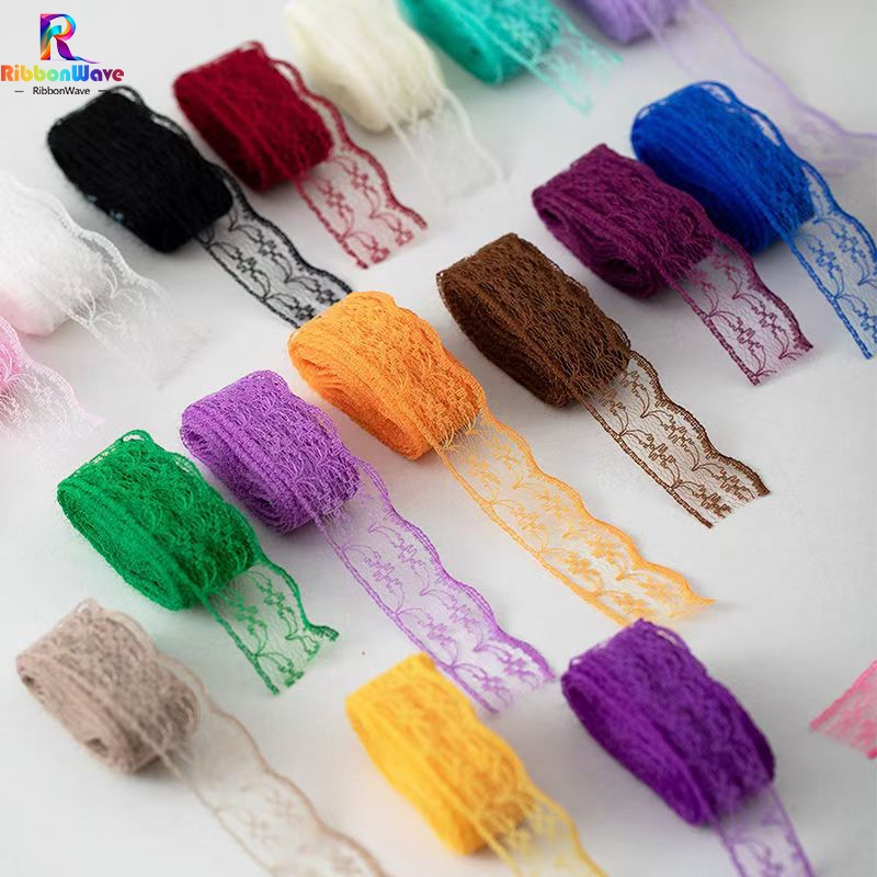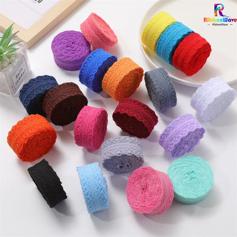 ริบบิ้นผ้าลูกไม้ สําหรับตกแต่งงานฝีมือDIY (20 หลา / ม้วน) กว้าง 1.5 ซม. สําหรับตกแต่งงานแต่งงาน งานวันเกิด