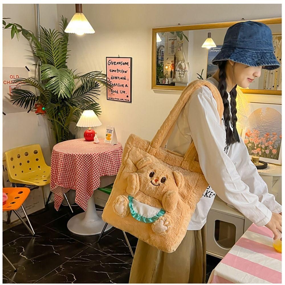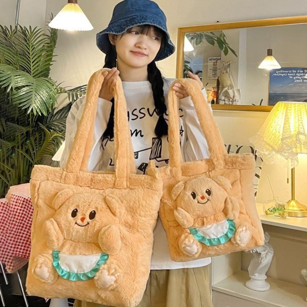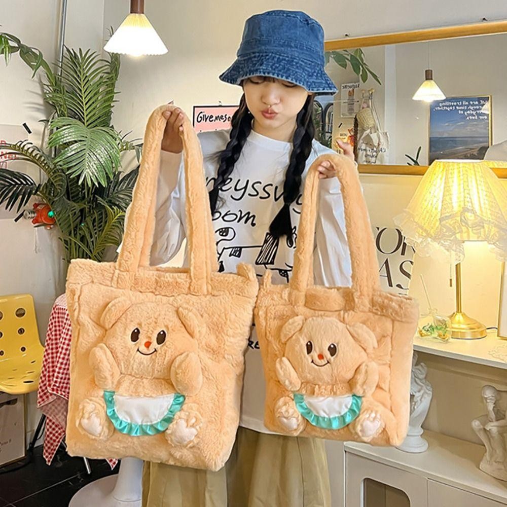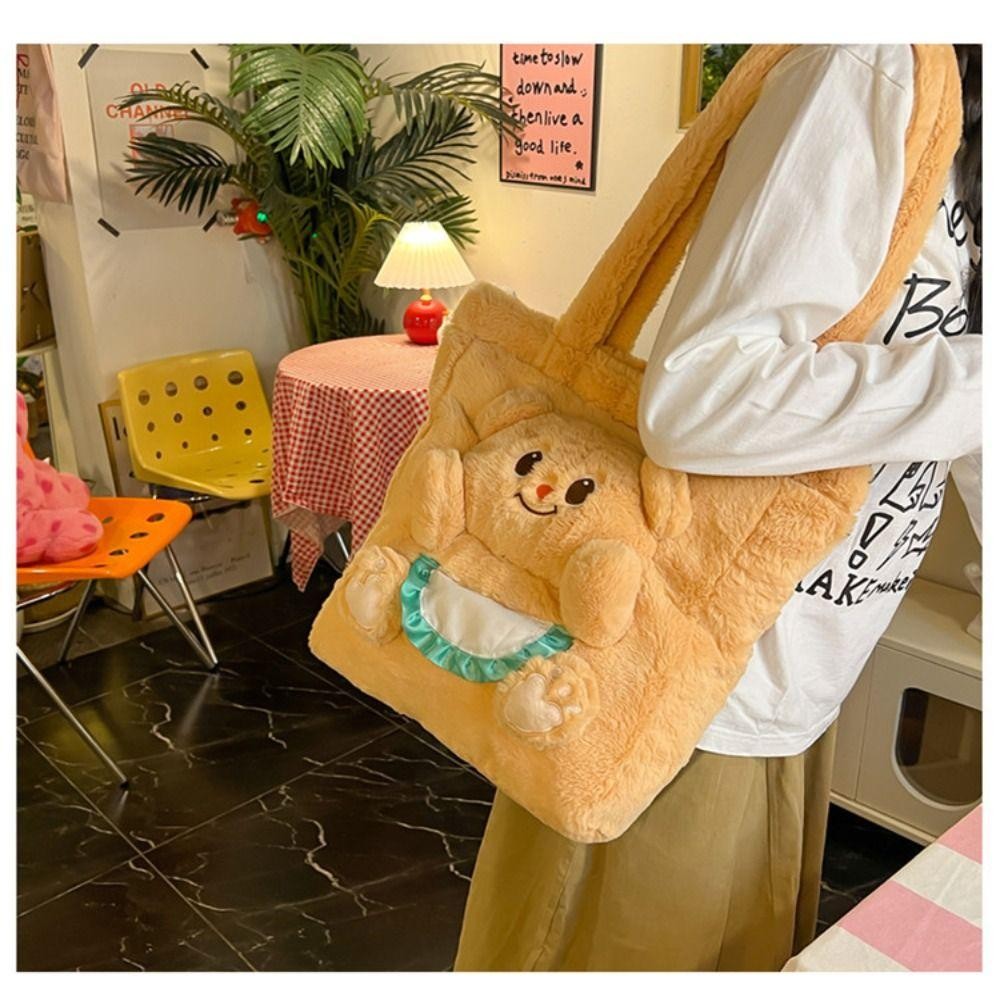 ชัดเจน0 กระเป๋าสะพายหมีเนย, ของเล่นตุ๊กตาผ้ากํามะหยี่ความจุขนาดใหญ่, หมีเนยการ์ตูนกระเป๋าถือสาวของขวัญ