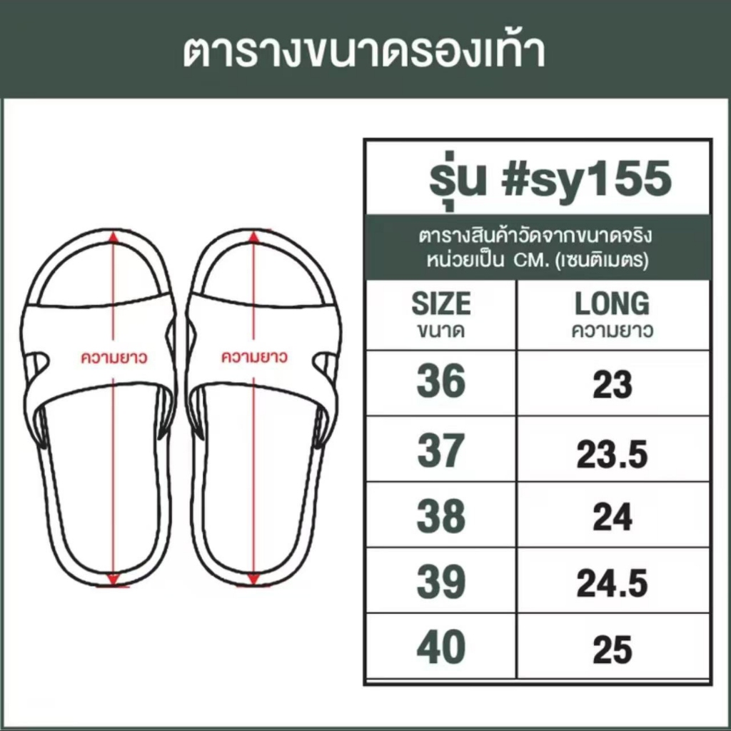 ตารางสินค้าวัดจากขนาดจริง หน่วยเป็น (CM)