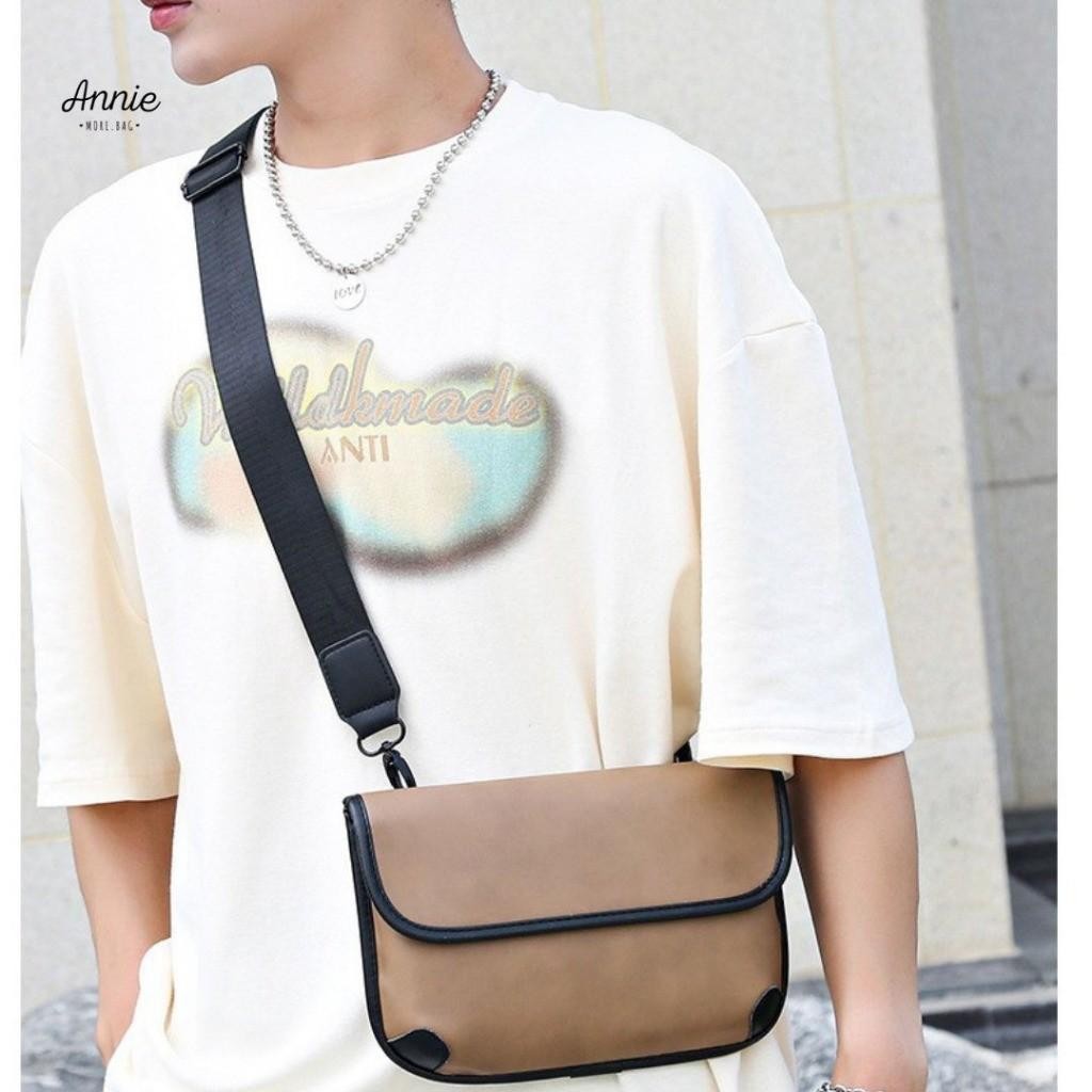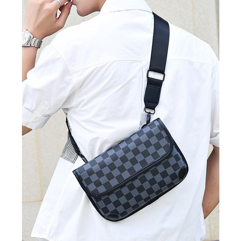 กระเป๋าสะพายข้างผู้ชาย กระเป๋าคาดหน้าอก ฝาพับ สไตล์เกาหลี งานหนังPU พร้อมส่ง