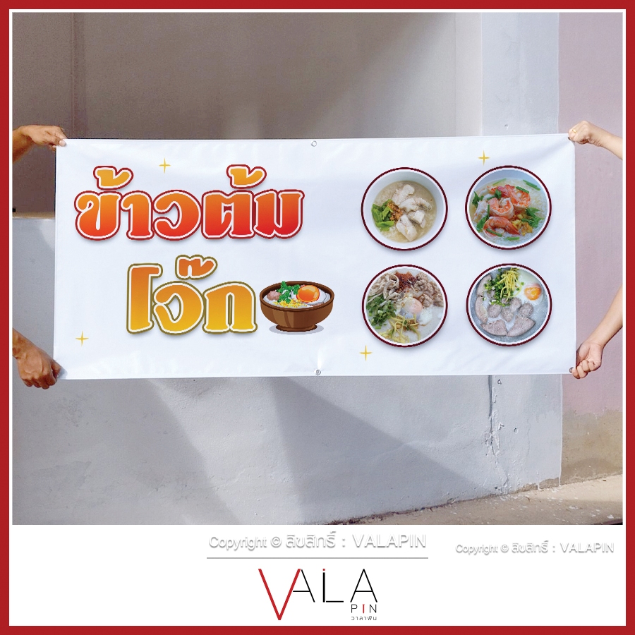 ป้ายไวนิล ร้านขายข้าวต้ม โจ๊ก สไตล์เรียบง่าย เจาะตาไก่ ธงญี่ปุ่น พร้อมส่ง