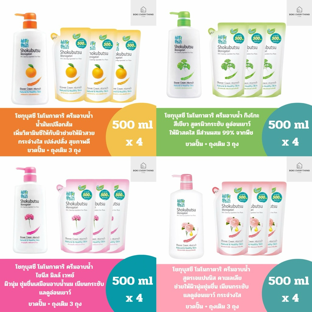 สบู่เหลว อาบน้ำ ครีมอาบน้ำ โชกุบุสซึ โมโนกาตริ 8 สูตร 400-500 ml x 12 /// เซ็ท ขวดปั๊ม 1 ขวด + ถุงเติม 3 ถุง