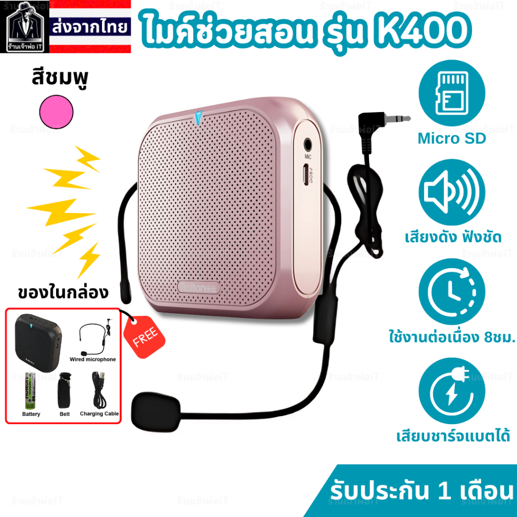 ไมค์ช่วยสอนสำหรับครู Rolton รุ่น K400 ไมค์สอนหนังสือ ประชุม จัดกิจกรรม ไมค์สอนนักเรียน ลำโพงพกพา
