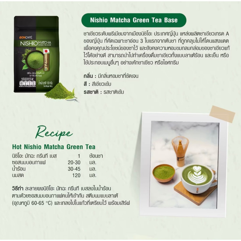 [ยกลัง] Boncafe - Matcha Green Tea ชาเขียวมัทฉะ | 1 kg (ถุงฟอยล์) / Boncafe - Matcha (Case)