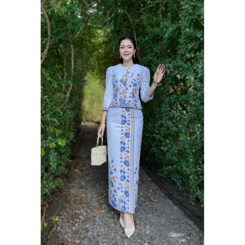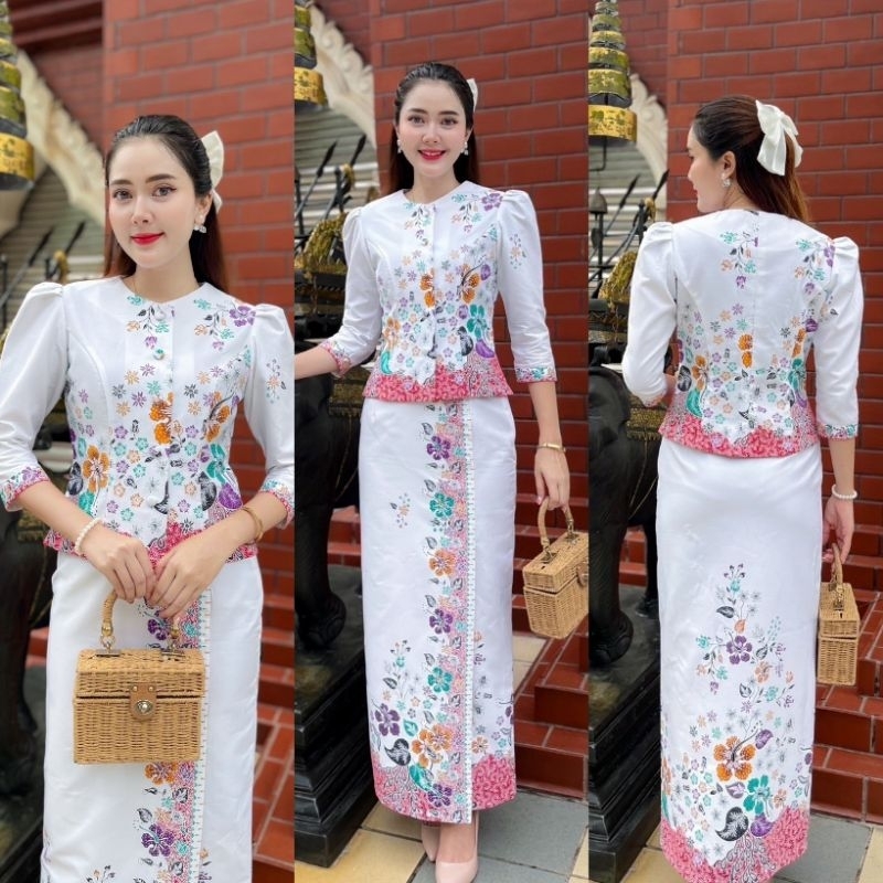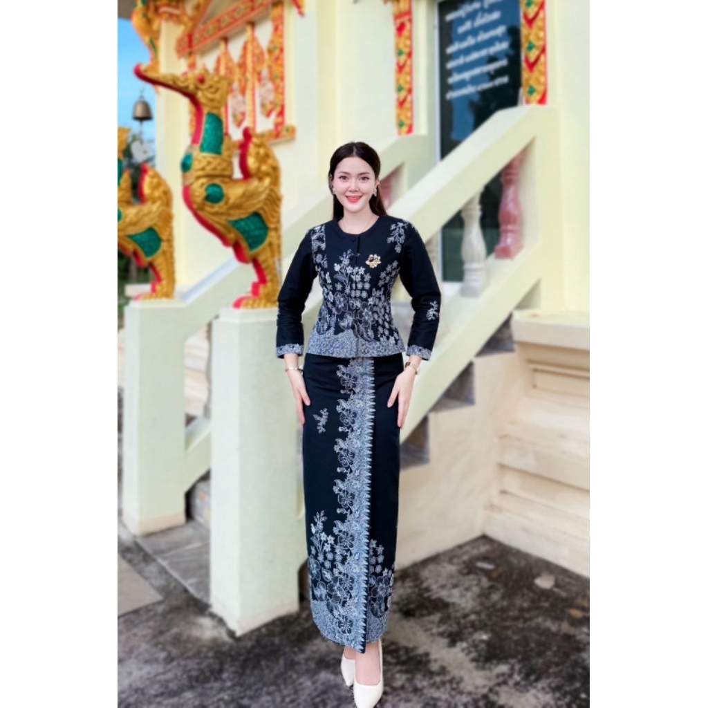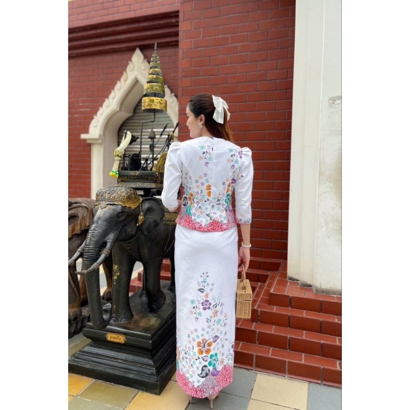เซต เสื้อทรงไทยเรือนต้น+ผ้าถุงป้าย ซิปข้าง ผ้าปาเต๊ะ