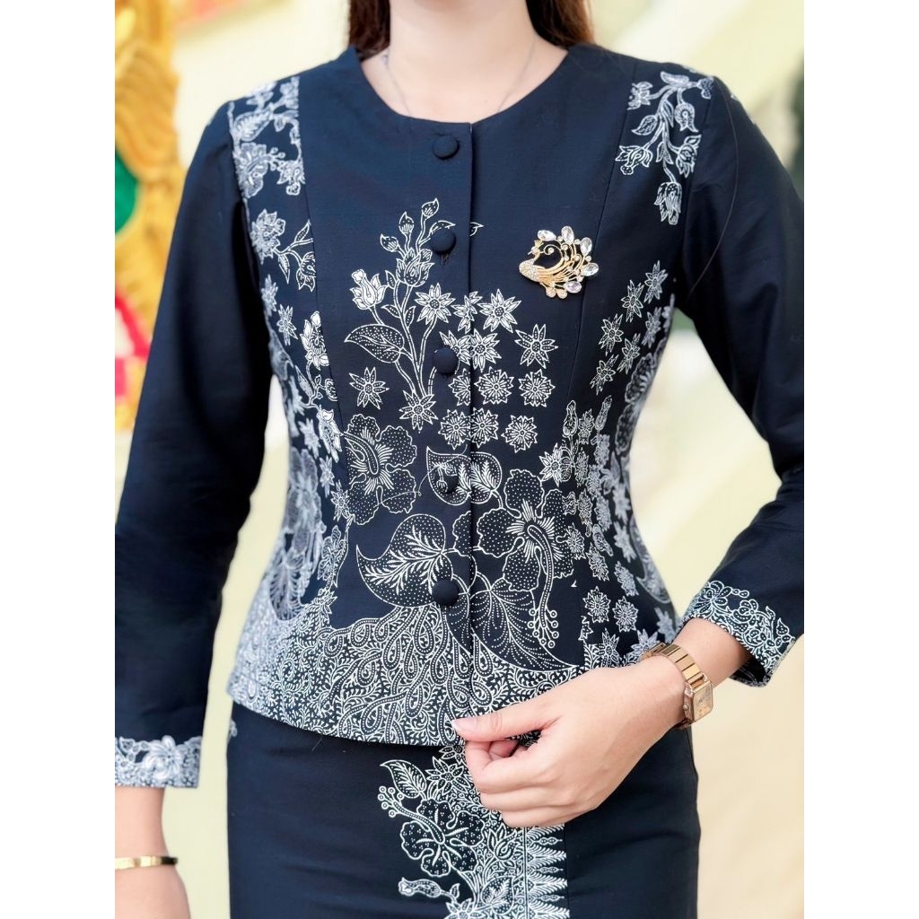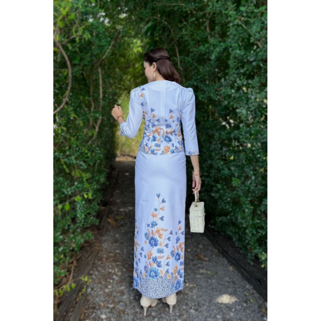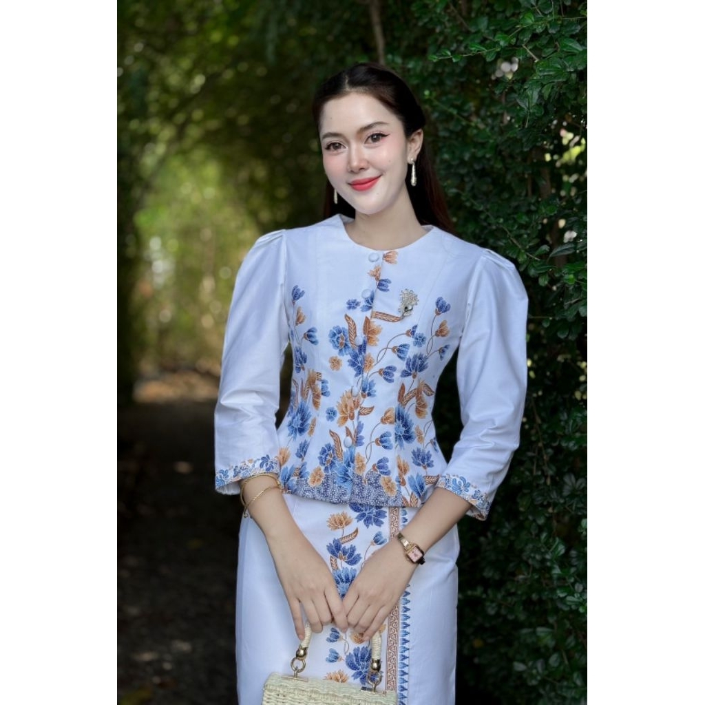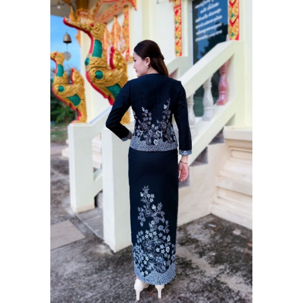 เซต เสื้อทรงไทยเรือนต้น+ผ้าถุงป้าย ซิปข้าง ผ้าปาเต๊ะ