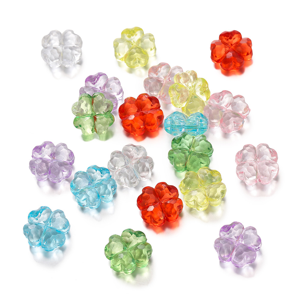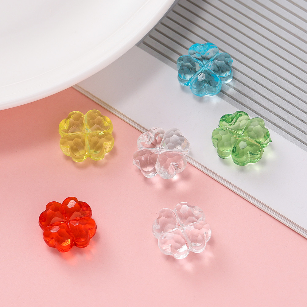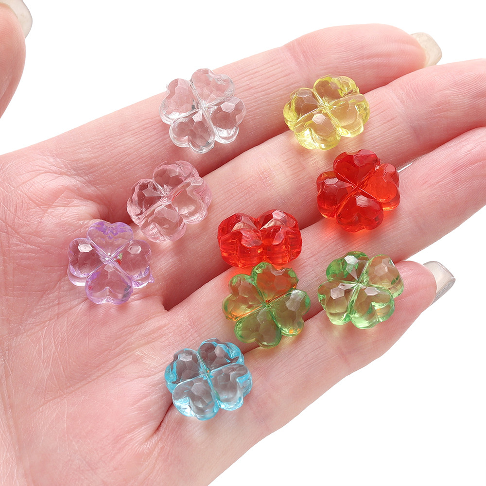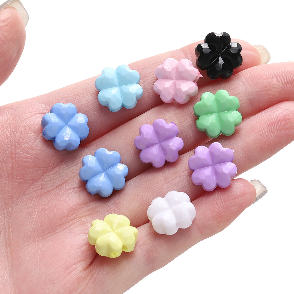 St.kunkka 10-20Pcs ลูกปัดอะคริลิค โคลเวอร์สี่ใบลูกปัดแฟชั่น DIY เครื่องประดับทําสร้อยคอสร้อยข้อมือ