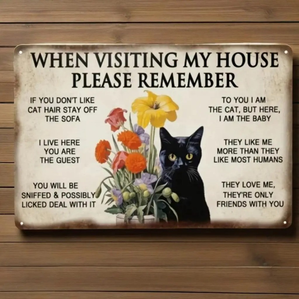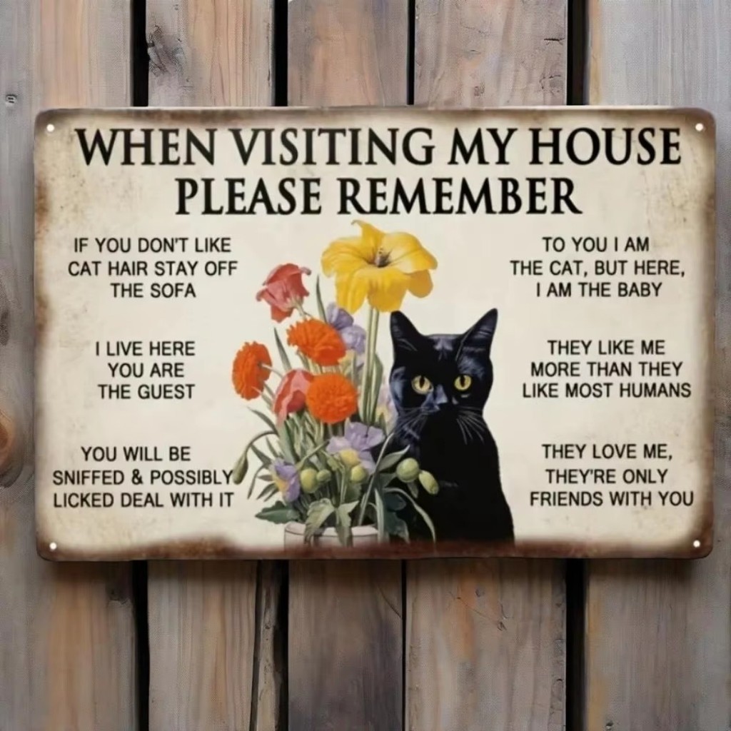 2D Vintage Black Cat Tin Wall Art – หยักโดย Paws Whimsical Decor สําหรับคนรักแมว – PurrfectPro ป้ายบ้านตลก 9 ชีวิต Sass – ตกแต่งบ้านสัตว์เลี้ยงที่ไม่ซ้ําใคร