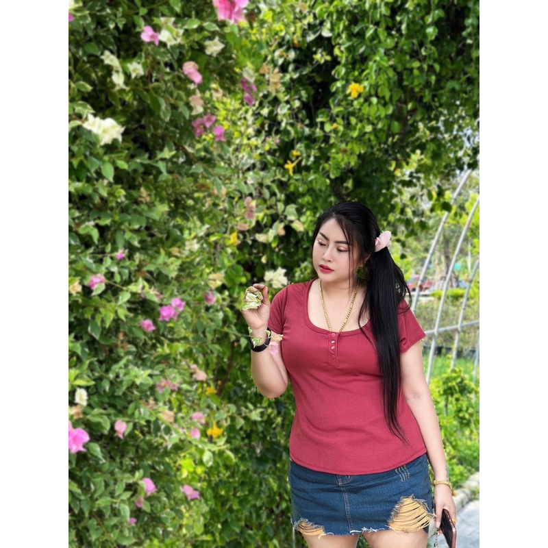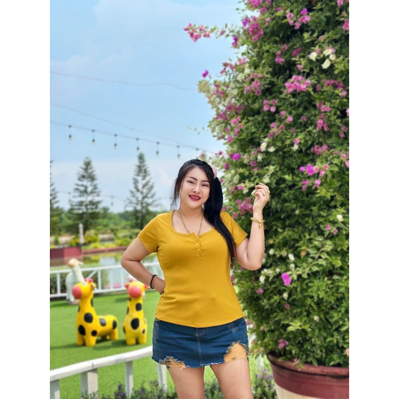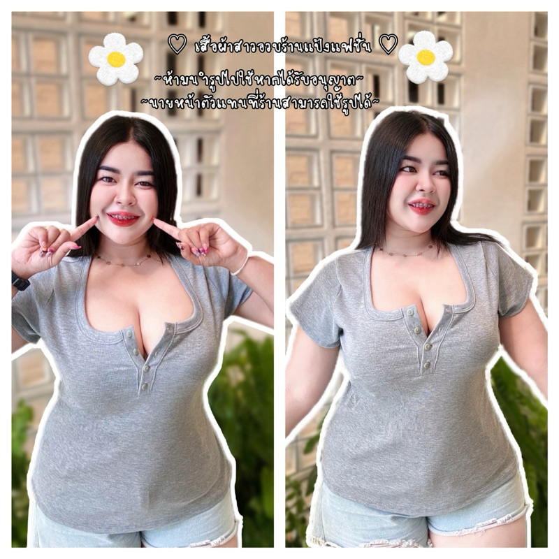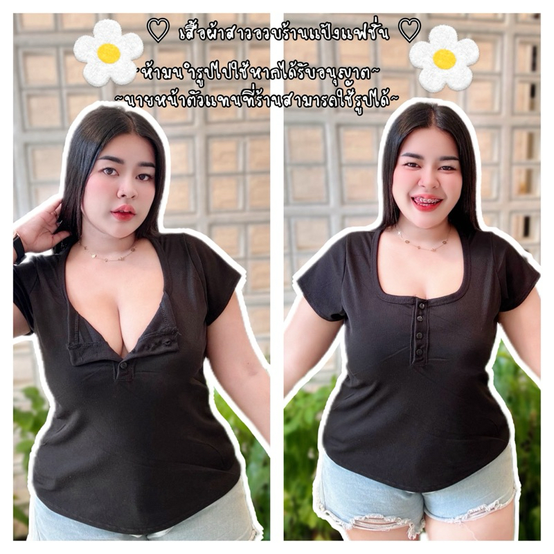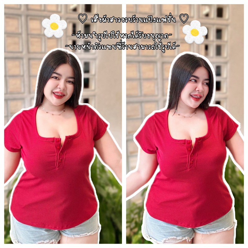เสื้อสาวอวบ อก 38-46ยาว23-24 ผ้าร่องกระดุมปลดได้(รุ่นคอยูปลดกระดุมได้)