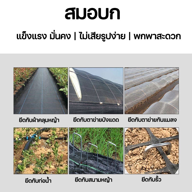 เหมาะสำหรับปักยึดผ้าคลุมวัชพืช ผ้าคลุมดิน ให้ติดอยุ่กับพื้นดิน กันไม