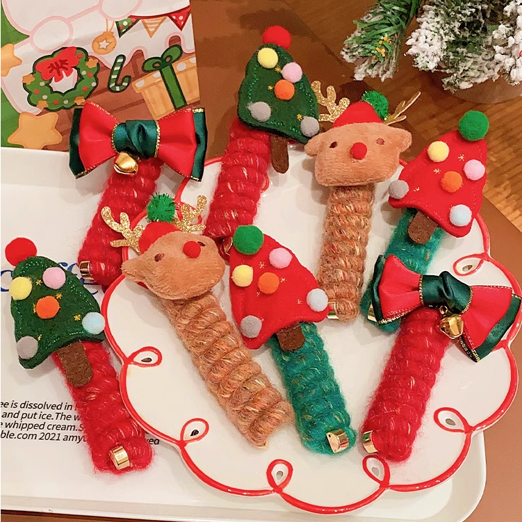ผ้าโพกศีรษะคริสต์มาสเด็กสายโทรศัพท์ผูกผมสาวผูกถักเปียที่คาดผมต้นคริสต์มาส