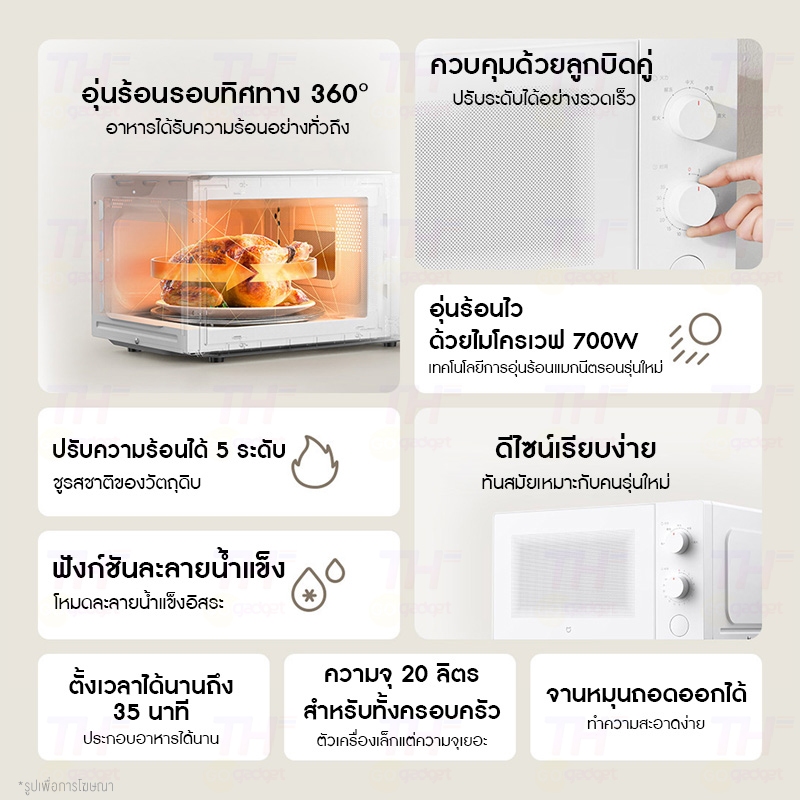 Mijia Microwave Oven 20L เตาไมโครเวฟ ไมโครเวฟกำลังไฟ 700W ปรับความร้อนได้ 5 ระดับ พร้อมโหมดละลายน้ำแข็ง