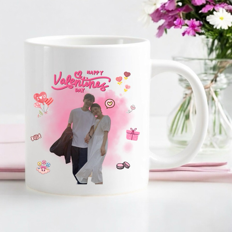 (จัดส่ง 1-2 วัน) แก้วสกรีนรูป ของขวัญวาเลนไทน์ ออกแบบฟรี แก้วมัค 11 ออนซ์