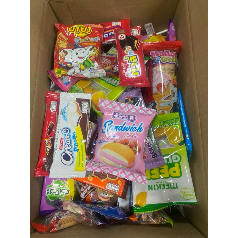 -ขนมชิ้น/ห่อ เล็ก ราคา1-3บาท (25ชิ้น) ห่อล่ะ5บาท (5ชิ้น) คละกันในกล่อง