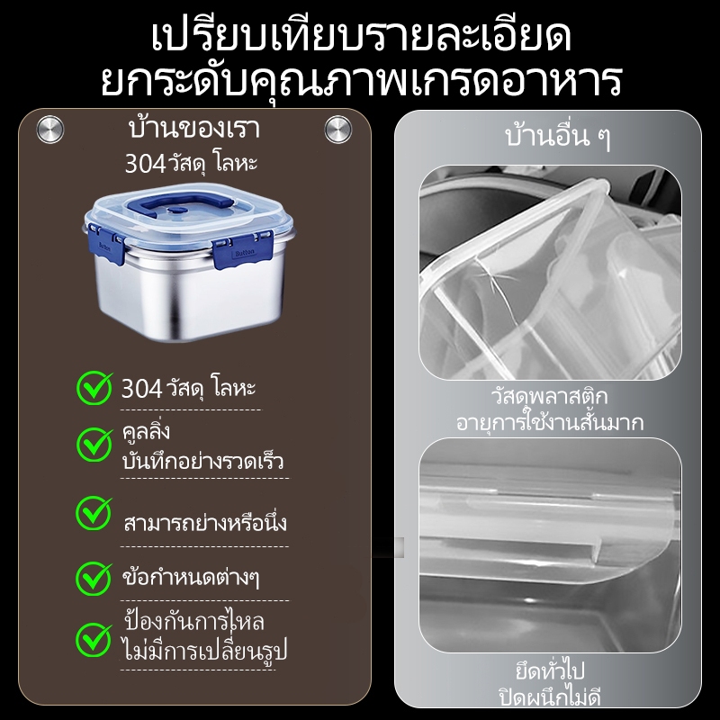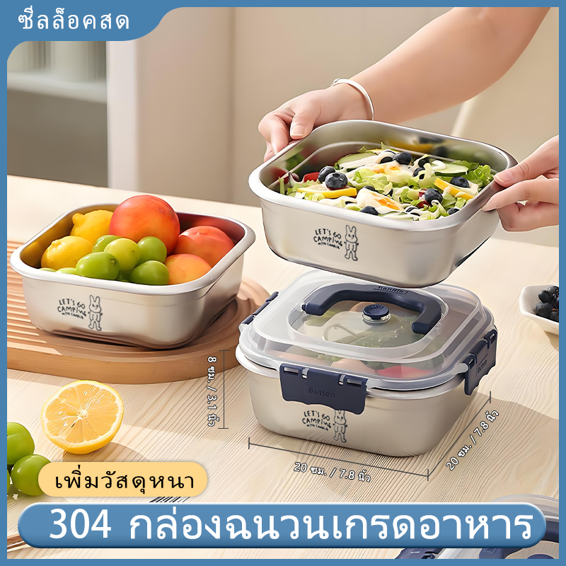 กล่องเก็บเหล็กสเตนเลส 304 มีฝาปิด กล่องเก็บของ กล่องเก็บอาหาร กล่องข้าว กล่องข้าวสาร ขนาดใหญ่ กันน้ำและปิดสนิท