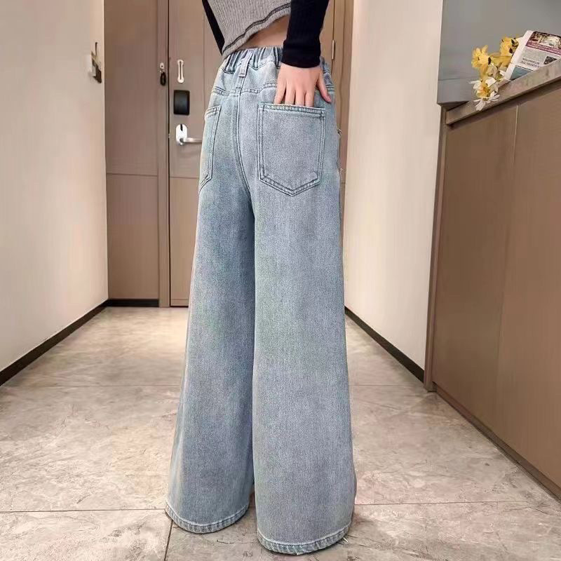 กางเกงยีนส์ขากว้างสาว Lemon-tree แฟชั่นใหม่ กางเกงขายาวทรงหลวมเด็ก seluar budak perempuan
