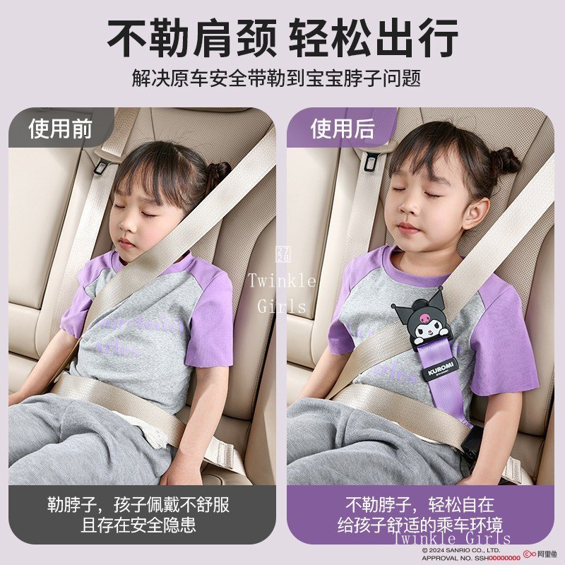 ตัวปรับเข็มขัดนิรภัยเด็ก Kuromi Cinnamoroll ของแท้ Hello Kitty My Melody ป้องกันการรัดคอ คลิปขยาย อุปกรณ์ป้องกันคอสำหรับเด็ก