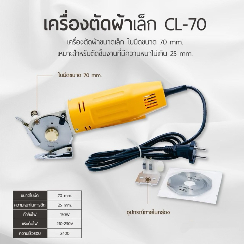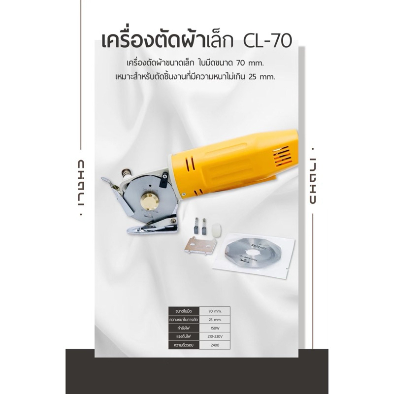 CHALI เครื่องตัดผ้า เครื่องตัดผ้าเล็ก รุ่น CL-70 สีเหลือง จับถนัดมือ ใบมีด 8 เหลี่ยม เกรด A คุณภาพดี (สินค้าพร้อมส่ง)