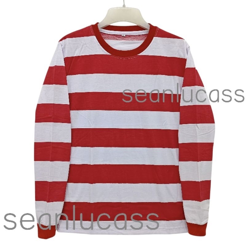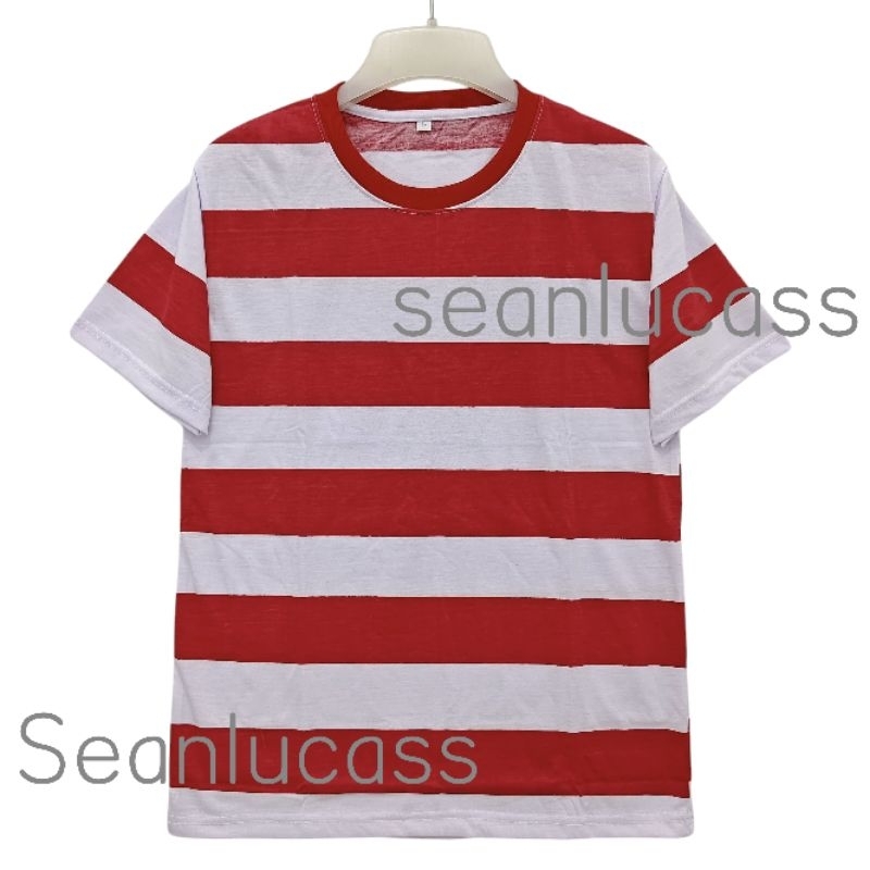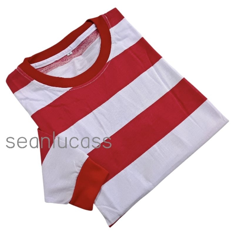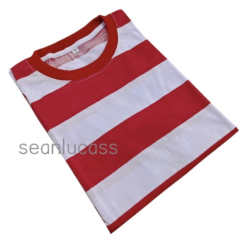เสื้อยืดลายทางสีแดงและสีขาวล้วน