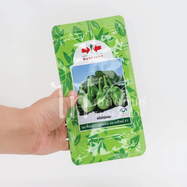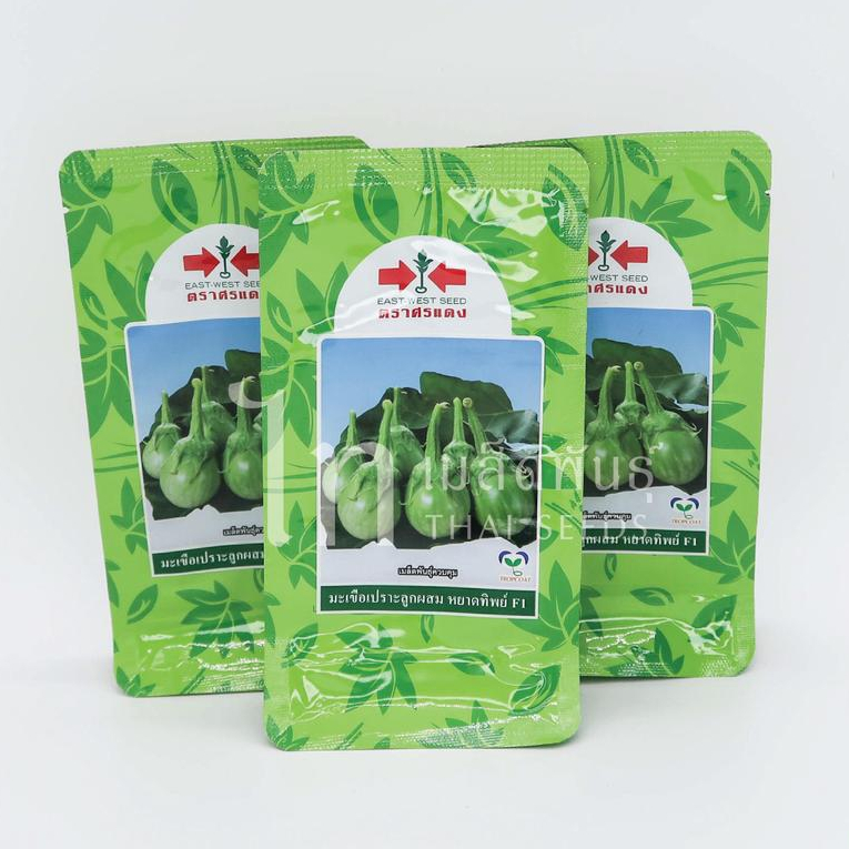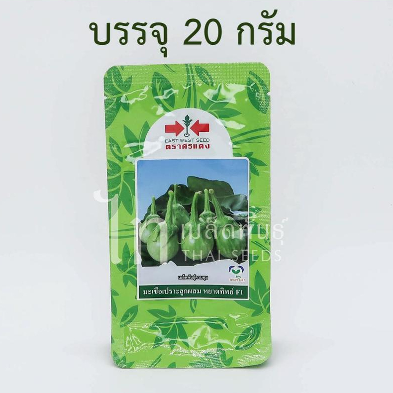 มะเขือเปราะ หยาดทิพย์ F1 เมล็ดพันธุ์ มะเขือ มะเขือจาว มะพร้าว ลูกผสม ตรา ศรแดง บรรจุ 20 กรัม