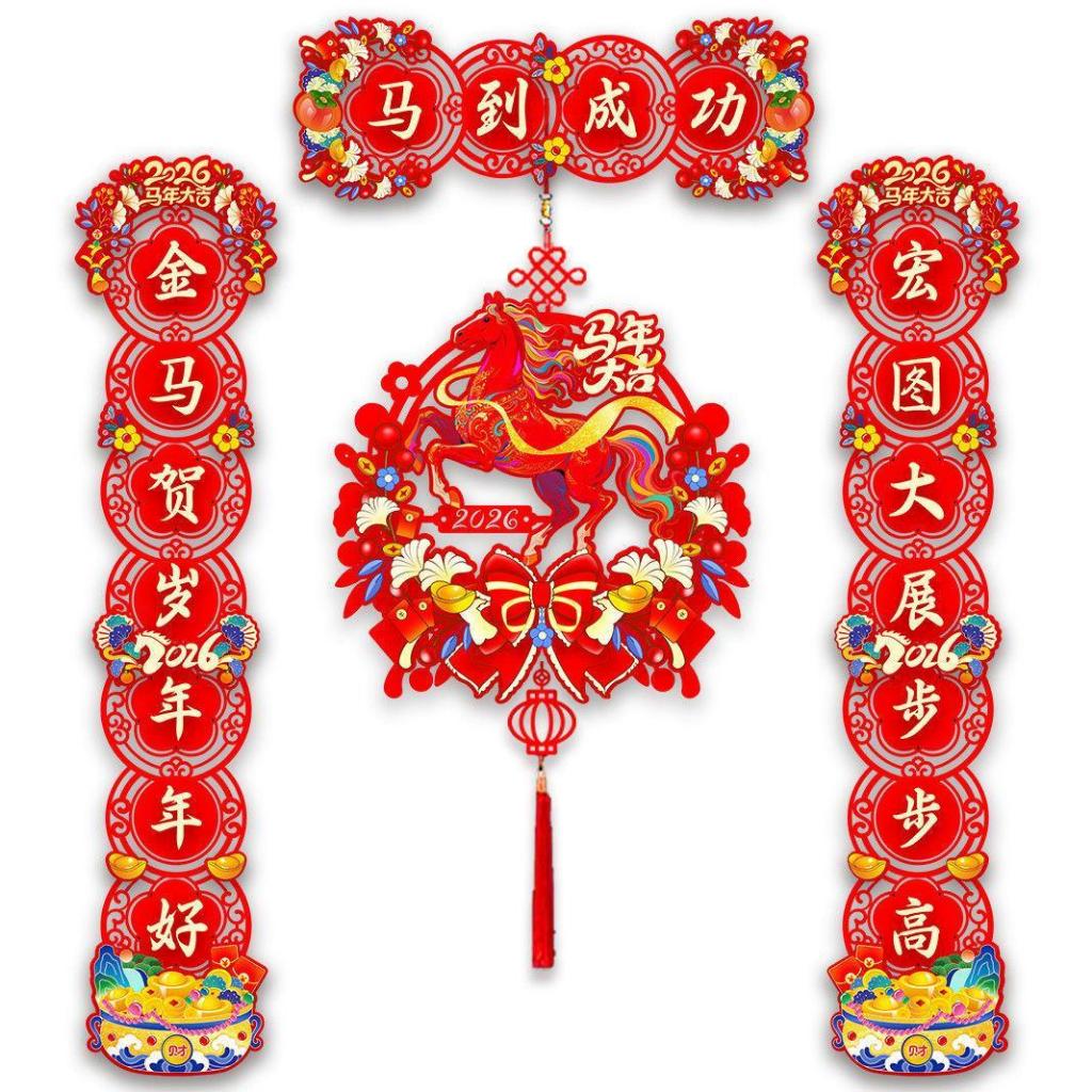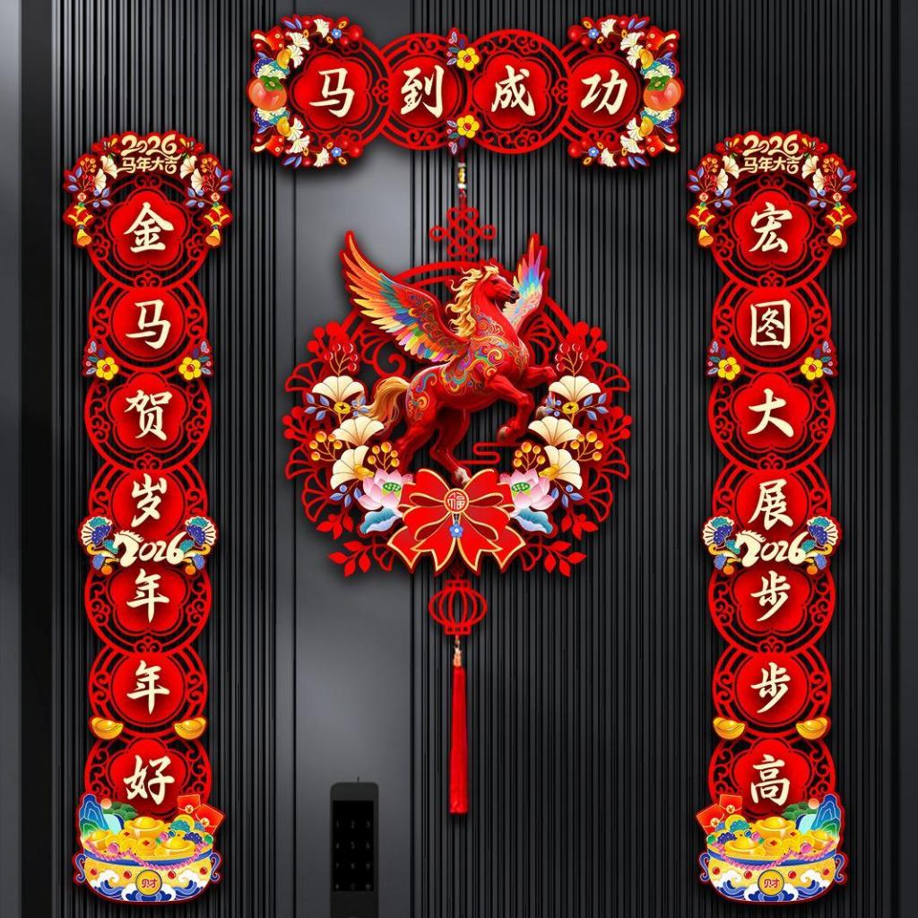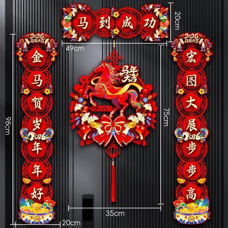 ปีม้า ปีใหม่จีน ตัวฟู้ ตัวฟู้หงายหัว คู่รักบนกระดาษแดง สติกเกอร์ประตูตรุษจีน แบบคู่ ม้าปี ตรุษจีน2569 และตัวอักษร สำหรับการตกแต่งในฤดูใบไม้ผลิ ชุด “WIN” คู่รักปีม้า 2026 ปีม้า2569 ตรุษจีน สีแดง ตกแต่ง ฉากจีนป ของแขวนตกแต่ง ของตกแต่งปีใหม่จีน-XYY马到成功对联